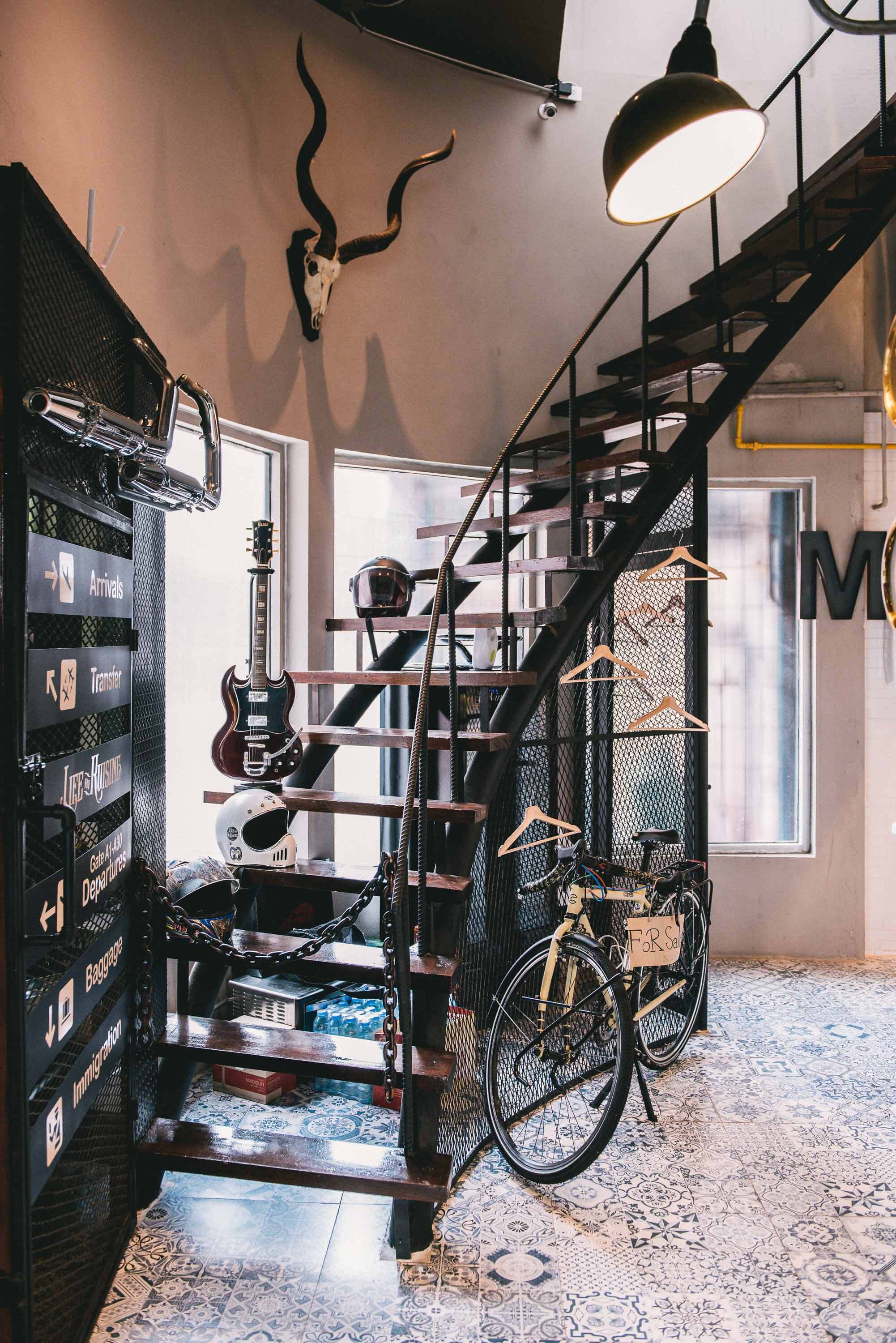 ตัวร้านมีลักษณะเป็นห้องแถวติดกัน ด้านหน้าประกับด้วยประตูสีฟ้าสดบานเก่า ตัดกับโครงเหล็กสีดำ ภายในร้านตกแต่งในสไตล์ Industrial-Loft ยกเพดานสูงให้ร้านดูกว้างขวาง พร้อมเลือกใช้โทนสีเข้มเท่ ๆ ให้เข้ากับคอนเซ็ปต์กลุ่มคนรักการขับมอเตอร์ไซค์แต่ง ตามผนังของร้านจะเต็มไปด้วยอุปกรณ์ที่ใช้ในการขับมอเตอร์ไซค์มากมาย ไม่ว่าจะเป็น เสื้อหนัง ถุงมือ หมวกกันน็อค รวมถึงมอเตอร์ไซต์ Indian Scout รุ่นสมัยสงครามโลกครั้งที่สองที่ตั้งโชว์อยู่หน้าร้าน และเนื่องจากเหล่าหุ้นส่วนเป็นคนที่ชอบเดินทางไปต่างประเทศบ่อย ๆ บริเวณทางเข้าห้องน้ำ จึงประดับด้วยป้ายบอกทางให้เหมือนกับที่สนามบิน พร้อมปูกระเบื้องลายวินเทจสุดหรูเพื่อให้ได้ลุคที่ต่างกับบริเวณด้านหน้าที่มาในสไตล์เท่ ๆ และยังเป็นมุมสำหรับถ่ายรูปอีกด้วย