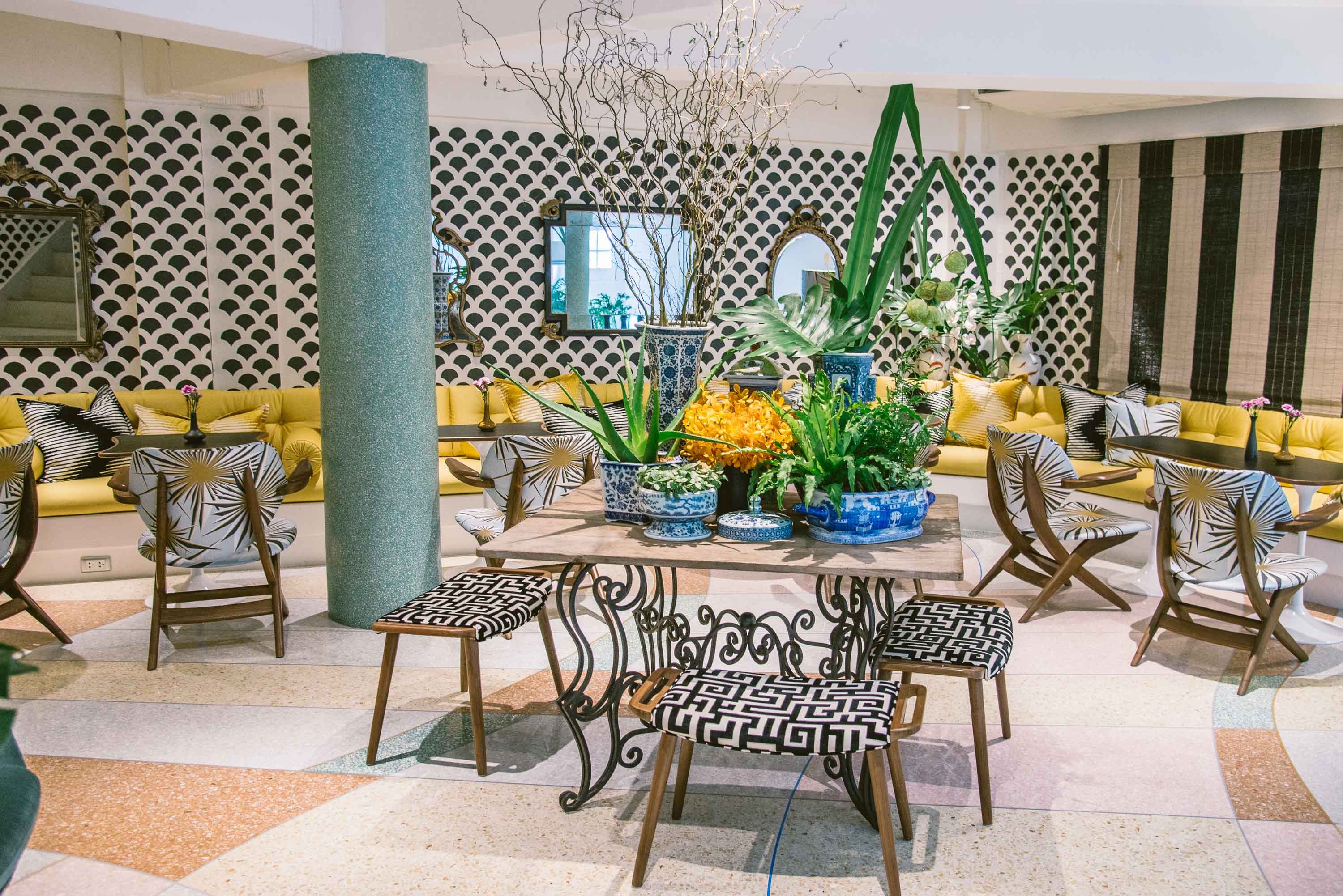 บรรยากาศภายในร้านเน้นตกแต่งโดยผสมผสานความโมเดิร์นและความวินเทจเข้าด้วยกันได้อย่างลงตัว ให้กลิ่นอายของความเป็นตะวันออกที่ดูคลาสสิกจากลวดลายเพ้นท์มือบริเวณผนัง พร้อมของตกแต่งที่มาจากของสะสมเก่าแก่และหายาก สัมผัสถึงความรู้สึกอบอุ่น สบายตาจากโทนสีขาว และต้นไม้สีเขียวหลากหลายชนิดที่ประดับตกแต่งอยู่โดยรอบร้าน สามารถเลือกนั่งที่บริเวณเอ้าท์ดอร์ด้านนอก หรือบริเวณชั้นลอยที่ตกแต่งอย่างสวยงาม ด้วยเฟอร์นิเจอร์เก๋ ๆ หลากหลายสี