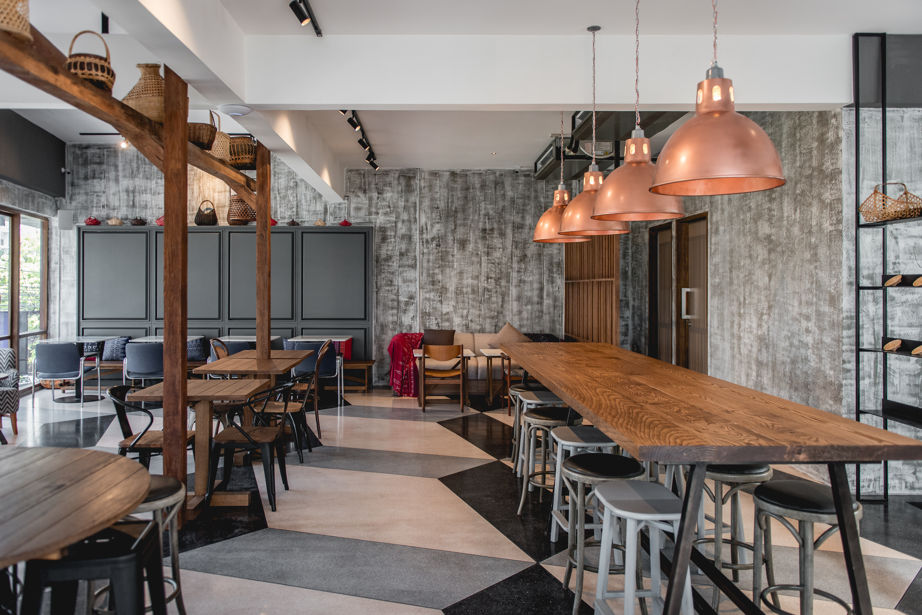 ตัวร้านแบ่งออกเป็น 2 ชั้น บริเวณชั้นล่างจะเป็นโซนครัวสำหรับทำเพสทรีขนาดใหญ่และโซนเพสทรีช็อป ส่วนบนชั้นสอง จะเป็นโซนที่นั่งสบาย ๆ มีโต๊ะไม้ยาวให้นั่งกันได้หลายคน ตกแต่งด้วยโครงไม้ พื้นหินขัด และผนังสีเทา ให้ความรู้สึกเรียบง่ายเหมือนมานั่งทานขนมที่บ้านเพื่อน แต่แฝงบรรยากาศอบอุ่นด้วยเฟอร์นิเจอร์ไม้และหน้าต่างบานใหญ่ที่รับแสงสว่างจากภายนอกได้ดี