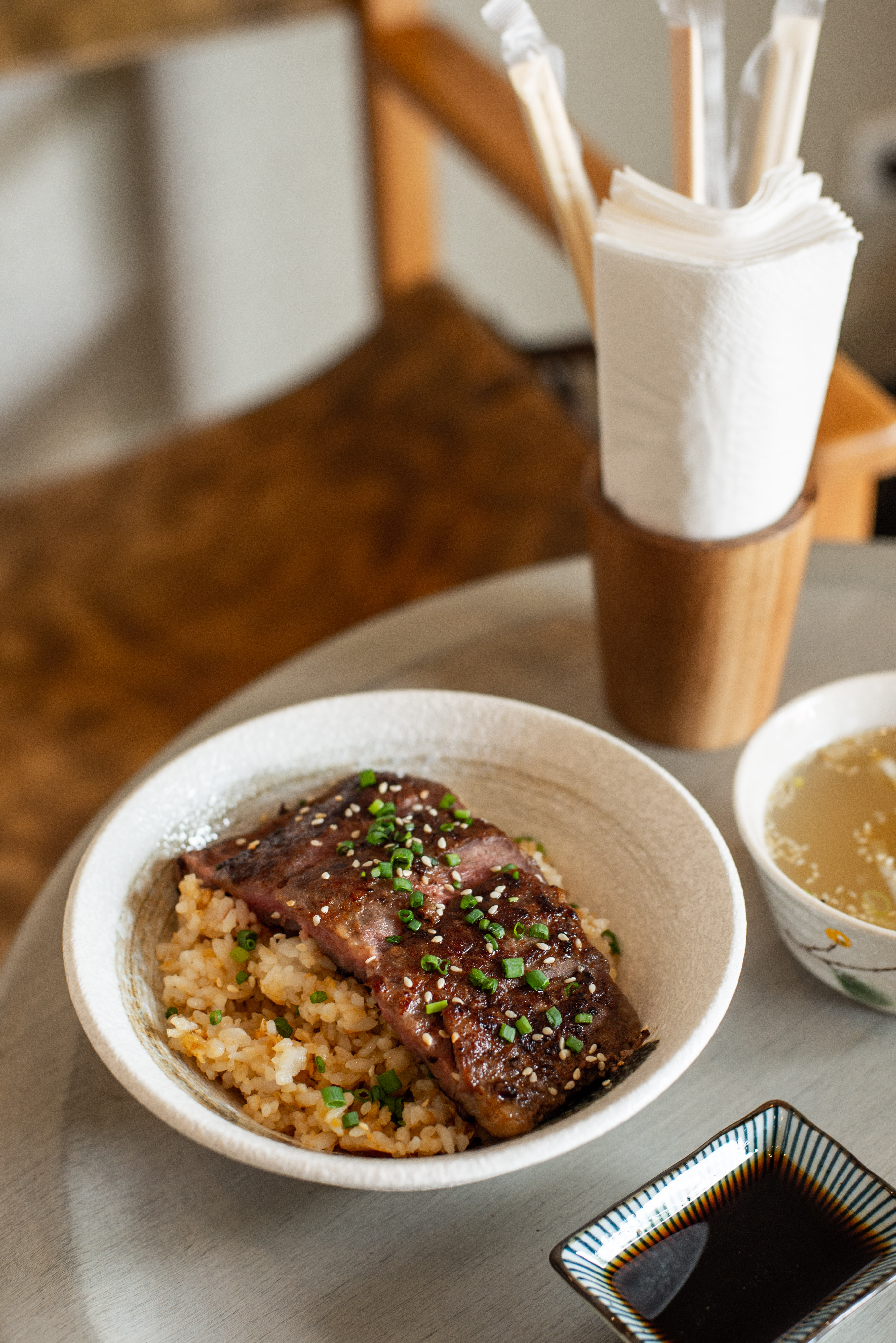 เมนูต่อไปสำหรับคนที่ชอบทานข้าวเป็นพิเศษ โดยทางร้านพร้อมเสิร์ฟความอร่อยด้วยเมนู Yakiniku Garlic Fried Rice (329 บาท) ข้าวผัดกระเทียมกลิ่นหอมเย้ายวนใจ ท็อปด้วยเนื้อย่างออสเตรเลียส่วนเซอร์ลอยน์ขนาดชิ้นกำลังดี ระดับความสุกแบบ Medium Rare ชุ่มฉ่ำน่าทาน มาพร้อมซุปร้อน ๆ ต่อด้วย Foie Gras Don (Half 279 / Full 499 บาท) ข้าวหน้าฟัวกราส์เทริยากิ ที่เสิร์ฟฟัวกราส์ชิ้นใหญ่ให้เนื้อสัมผัสนุ่ม ท็อปด้วยเห็ดหอม และราดซอสเทริยากิเข้มข้น