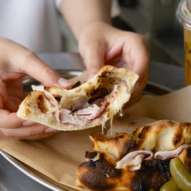 ในส่วนของเมนูยังคงเน้นความเรียบง่ายแต่คุณภาพแน่น อย่าง HAM & CHEESE (280 บาท) ที่มาพร้อมความเข้ากันของแฮมคุณภาพดีและ Mozzarella มาสร้างรสชาติคลาสสิกที่คุ้นเคย เพิ่มเท็กเจอร์และกลิ่นที่เป็นเอกลักษณ์ของมัสตาร์ด เสิร์ฟมากรุ่น ๆ กับความหอมของแป้งอบสดใหม่ เคียงมากับแตงกวาดองให้ตัดรส