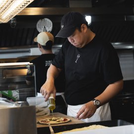 Mini Maru ร้านน้องใหม่จากทีม Maru Maru Pizza ที่ต่อยอดความอร่อยของแป้งพิซซ่าสูตรซิกเนเจอร์มาในรูปแบบที่เข้าถึงง่ายขึ้น โดยเฉพาะการหยิบเอาเทคนิคการทำแป้งแบบ Biga มาหมักยาวนานถึง 72 ชั่วโมง จนได้เนื้อแป้งที่มีความหอม นุ่ม และเบาสบายท้องเป็นพิเศษ เหมาะกับการกินตั้งแต่ช่วงเช้าโดยไม่รู้สึกหนักเกินไป กลายเป็นคอนเซ็ปต์ “pizza for breakfast” ที่ตอบโจทย์คนเมืองที่อยากเริ่มวันด้วยของดีแบบไม่ต้องรอถึงมื้อเย็น