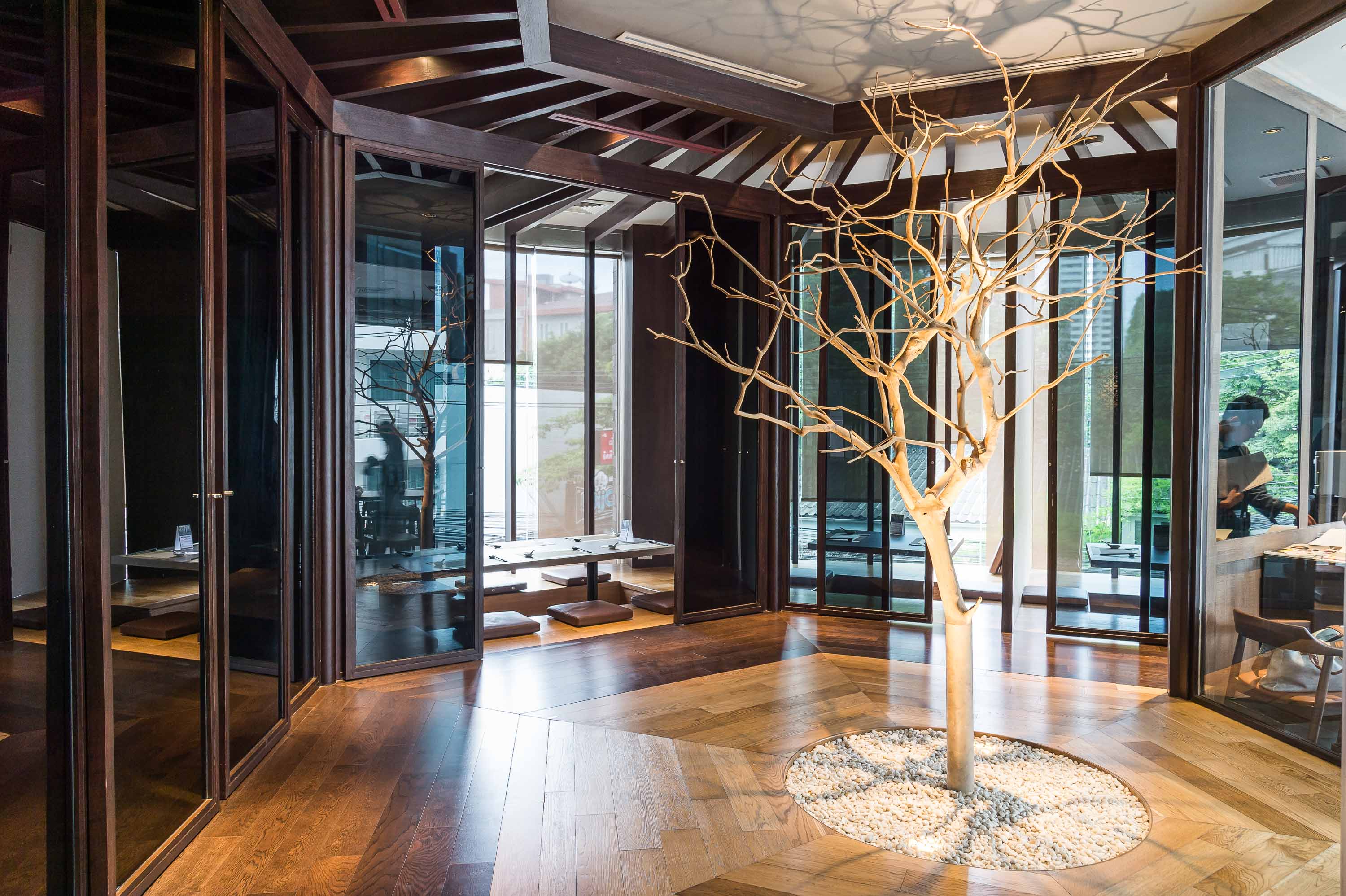 ตัวร้านตั้งอยู่บนชั้น 2 ภายใน นิฮอนมูระมอลล์ บรรยากาศภายในร้านยังคงสัมผัสถึงความเป็นร้านอาหารญี่ปุ่นแต่แฝงไปด้วยความโมเดิร์นและความเป็นส่วนตัว เหมาะสำหรับแขกทุกกลุ่ม ทั้งที่มาเดี่ยว มาเป็นคู่ ครอบครัว หรือเลี้ยงฉลองกับเพื่อนฝูง เพราะทางร้านมีห้องส่วนตัวไว้ต้อนรับเช่นกัน