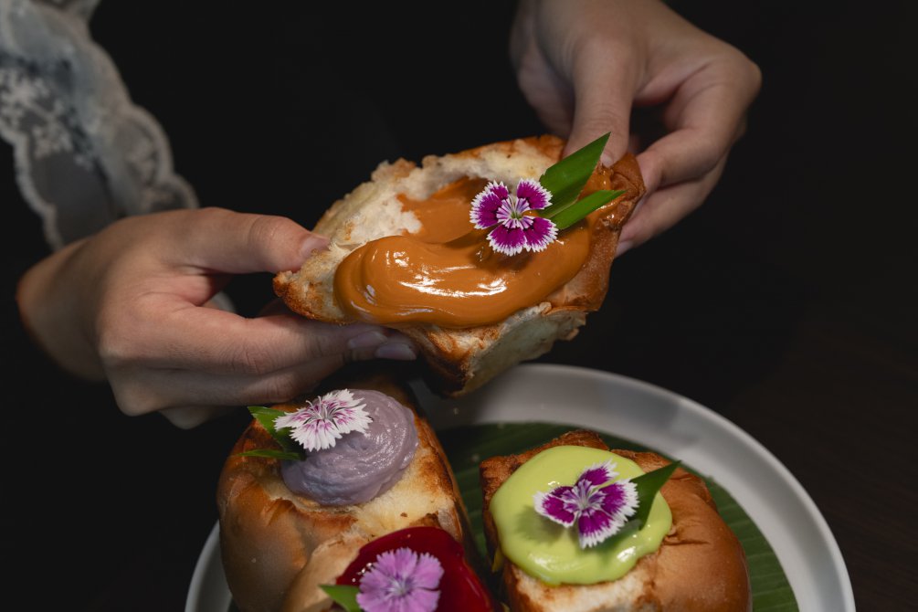 ต่อมาที่ขนมและของหวานที่สามารถเลือกทานกันได้แบบจุใจ ไม่ว่าจะเป็น ขนมปังไส้ทะลัก หลากหลายไส้ให้เลือกทานกันตามชอบ เสิร์ฟมาร้อน ๆ ไส้แน่นทานเพลิน หรือจะเป็นขนมแบบไทย ๆ อย่าง กล้วยปิ้งคาราเมล ก็มาในรูปแบบเสียบไม้ทานง่าย ตัวกล้วยผ่านการปิ้งมาหอม ๆ ได้เท็กเจอร์ที่พอดี เสิร์ฟเคียงมากับคาราเมลสูตรของทางร้านให้ทานคู่กัน