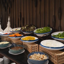 ส่วนใครแวะมาในวันจันทร์ - ศุกร์ ที่ NAĀ Restaurant ขอแนะนำมื้อกลางวันแบบบุฟเฟ่ต์ All You Can Eat Style ที่มีกิมมิกเป็น Mysterious Lunch Set (199 บาท) ที่สามารถเลือกจานหลักได้ 1 จาน จากใน “Mysterious Menu” และยังสามารถเอ็นจอยไปกับไลน์บุฟเฟ่ต์หลากหลายเมนูที่ผลัดเปลี่ยนหมุนเวียนมาให้ชิมกันได้ที่สเตชันบุฟเฟต์ภายในเวลา 12.00 - 14.00 น.