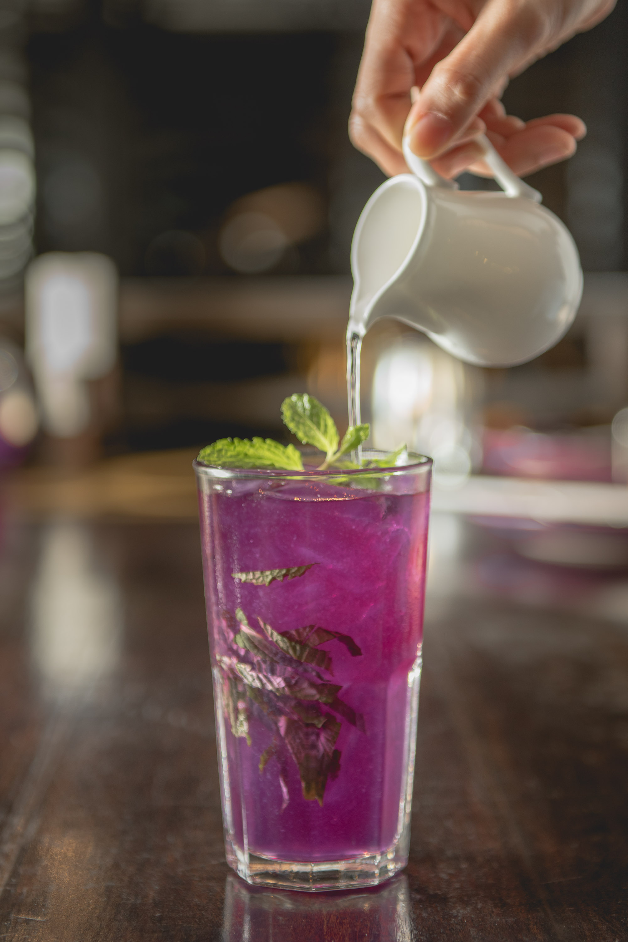 ส่วนเมนูเครื่องดื่มแนะนำ อัญชัน (100 บาท) น้ำสมุนไพรสีม่วงสวย ที่เหมาะเป็นเมนูเพิ่มความสดชื่นในช่วงหน้าร้อนนี้