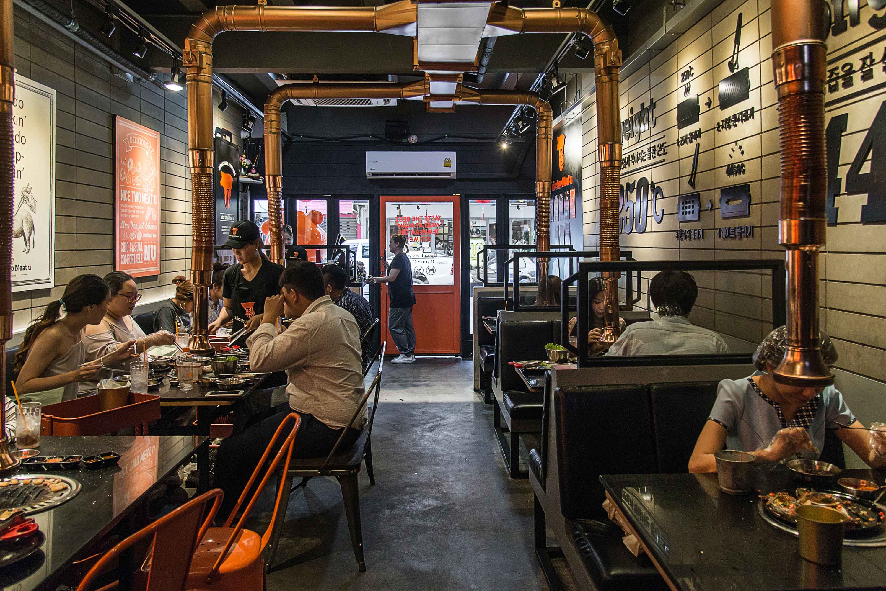 ร้านมีทั้งหมดสองชั้น ตกแต่งโดยยึดตามต้นฉบับแบบเกาหลี แต่จะแตกต่างตรงที่ที่ร้านมีเตาปิ้งย่างและกระทะแยกส่วนกัน ส่วนที่เกาหลีจะมีแค่กระทะอย่างเดียว ส่วนใครที่กลัวว่าเสื้อผ้าจะติดกลิ่นควันก็เบาใจได้เลย เพราะที่นี่มีหมวกให้คลุมพร้อมทั้งเครื่องดูดควันที่ช่วยลดควันจากเตาปิ้งย่างได้เป็นอย่างดีBefore The Grill