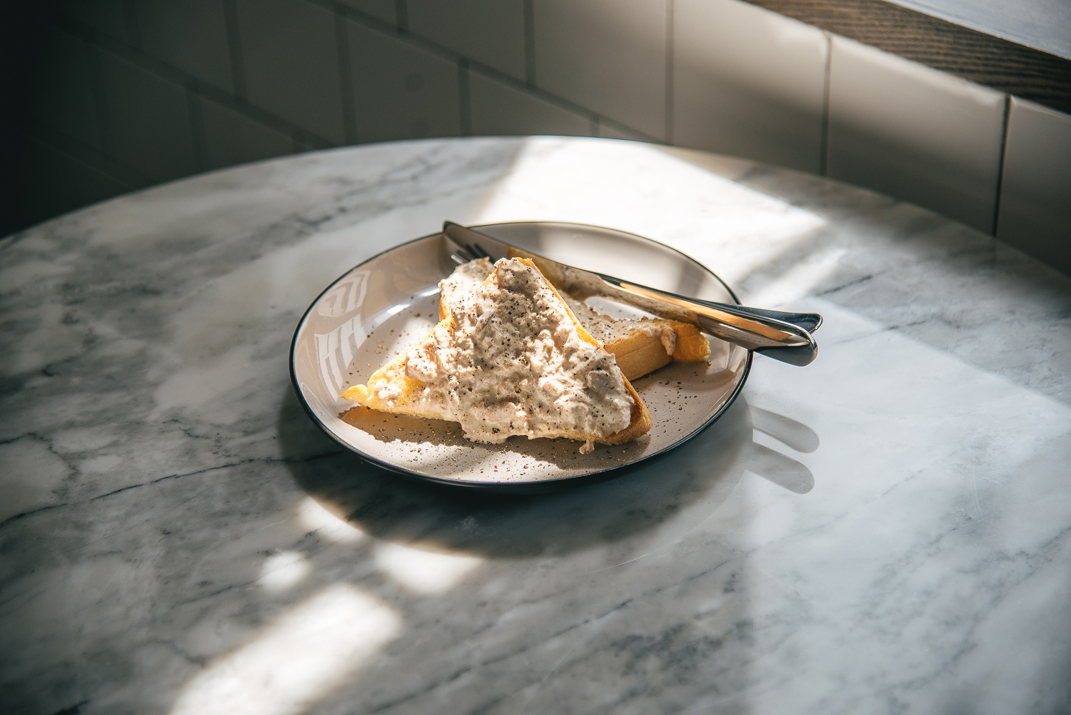 เบรกทานอาหารว่างกับเมนูธรรมดาที่ไม่ธรรมดาอย่าง TUNA MAYO ที่มีให้เลือกเสิร์ฟ 2 แบบ คือ Open Toast 1 แผ่น (89 บาท) และแบบ Sandwich (129 บาท) ขนมปังโทสต์หน้าทูน่าเนื้อแน่น ๆ ผสมกับซอสมายองเนสสูตรพิเศษจากทางร้านโรยพริกไทดำช่วยให้หอมและอร่อยมากขึ้น