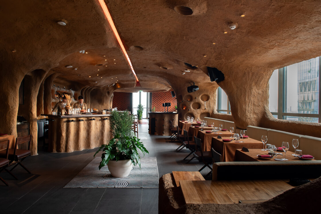 บริเวณกลางร้านยังเพิ่มลูกเล่นด้วยช่องแสงวงกลมด้านบนเพดาน ที่เปิดให้แสงธรรมชาติส่องลงมาทั่วบริเวณร้าน ขับบรรยากาศภายในร้านให้ดูอบอุ่นขึ้นทันตา โดยที่นั่งแต่ละจุดได้มีการแบ่งโซนให้เลือกนั่งพักชิลล์ ๆ, จิบกาแฟทำงานระหว่างวัน, ทานอาหารสบาย ๆ ที่โซฟา หรือนั่งหน้าบาร์เพื่อชมฝีไม้ลายมือของเชฟที่ลงมือครีเอตความอร่อยอย่างพิถีพิถันตามวิถีการทำอาหารแบบญี่ปุ่นก็ได้เช่นกัน