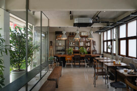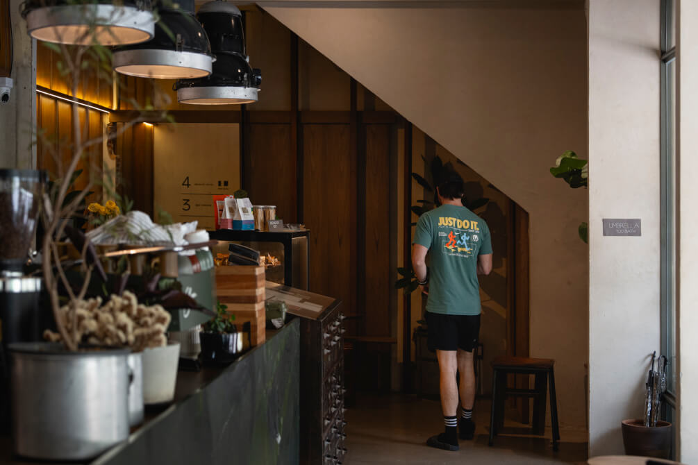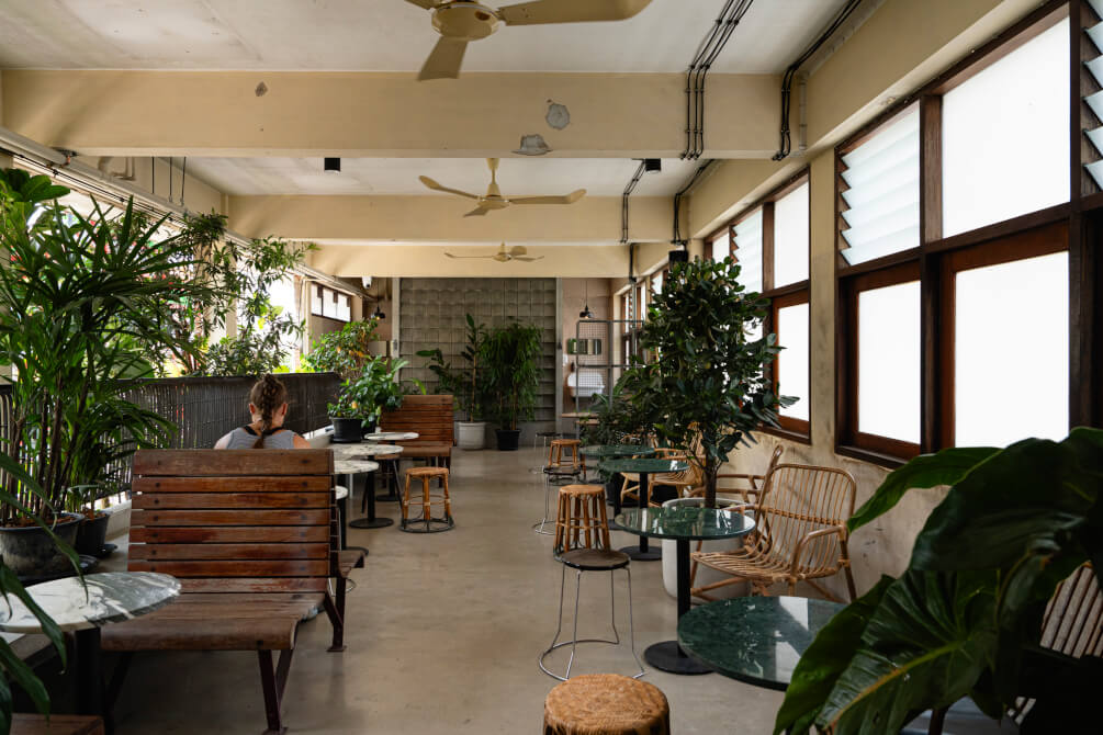 ที่นี่เกิดจากการรีโนเวตอาคารเก่า 4 ชั้น โดยชั้น 1–3 ถูกออกแบบให้เป็นคาเฟ่และ Co-Working Space ที่สะท้อนความถนัดด้านงานตกแต่งของเจ้าของร้าน ผ่านการทุบผนังทึบเพื่อเปิดรับแสงธรรมชาติและสร้างความโปร่งโล่ง เติมชีวิตชีวาด้วยต้นไม้เล็ก ๆ ที่จัดวางตามมุมต่าง ๆ ข้าวของสะสมจากครอบครัวก็ถูกหยิบกลับมาใช้เป็นของตกแต่ง เสริมบรรยากาศให้อบอุ่นและเป็นกันเองอย่างพอดี ไม่ว่าคุณจะมานั่งทำงาน จิบกาแฟเงียบ ๆ หรือใช้เวลาชิลล์คนเดียว สเปซแห่งนี้ก็พร้อมให้คุณได้ “พักหายใจ” อย่างสบายใจ