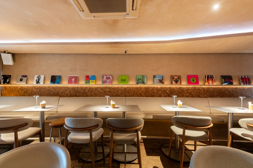 ออกแบบสเปซอย่างมีเอกลักษณ์เฉพาะตัว ด้วยผนังที่ประดับด้วยแผ่นเสียง สะท้อนถึงวัฒนธรรมดนตรี และเมนูบอร์ดเรืองแสงที่ลอยตัว สร้างบรรยากาศที่เชื้อเชิญให้เข้ามาเอ็นจอยความสนุกภายในร้าน ซึ่งดีไซน์ออกมาได้อย่างมีสไตล์เรียบง่ายและทันสมัย (Urban Minimalism) ตอบโจทย์การเป็นคอมมูนี้ตี้ที่เสริมสร้างปฏิสัมพันธ์และประสบการณ์แฮงเอาต์ใหม่ ๆ ที่ไม่เหมือนใคร นอกจากนี้ยังมีดีเจที่คอยเปิดเพลงสร้างสรรค์บรรยากาศให้ครื้นเครง คัดสรรบทเพลงที่เปลี่ยนไปตามจังหวะของค่ำคืน ตั้งแต่เฮาส์บีทคลาสสิก โซล ดิสโก้ ฟังก์ ไปจนถึงเพลงที่ชวนให้ร้องตาม โยกตามเบา ๆ รวมเป็นไวป์ของความสนุกสนานที่ผสมผสานกับความสบายได้อย่างลงตัว
