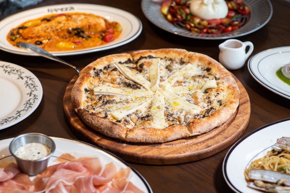 ท้าชิงความอร่อยด้วยหมวดพิซซ่าเตาถ่านที่อบกันแบบสดใหม่กับเมนู Brie Truffle Pizza (ราคา 550 บาท) พิซซ่าหน้าทรัฟเฟิลซอส ซิกเนเจอร์ของทางร้าน พร้อมเพิ่มรสและเนื้อสัมผัสแบบเต็มคำด้วยเห็ดทรัฟเฟิล พาร์มาแฮม และบรีชีสสดชิ้นใหญ่ที่ท็อปหน้าพิซซ่ามาแบบเน้น ๆ