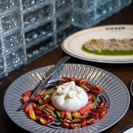 ในส่วนของเมนูแนะนำ ขอประเดิมกันที่หมวดสลัดสุดเฟรช Burrata Salad (320 บาท) สลัดบูราต้า เมนูสลัดที่ขายดีที่สุดของทางร้าน เสิร์ฟความสดชื่นด้วยผักร็อกเก็ตกับมะเขือเทศเชอร์รีสด คลุกเคล้าซอสโฮมเมดจาก Italian Basil ที่นำมาปั่นทำเป็นซอสเพสโต้ พร้อมราดบัลซามิก น้ำมันมะกอกและโรยตามด้วยพริกไทยดำเล็กน้อย ท็อปหน้าด้วยชีสบูราต้าที่มีความครีมมี่ ทานง่าย ไม่เลี่ยนจนเกินไป ตักทานพร้อมกันได้ทั้งความสดชื่นและเรียกน้ำย่อยก่อนเริ่มมื้ออาหารได้ดี