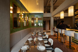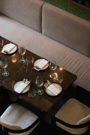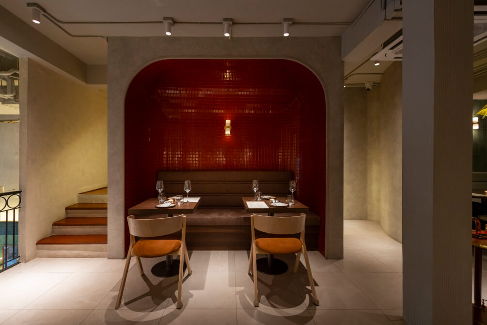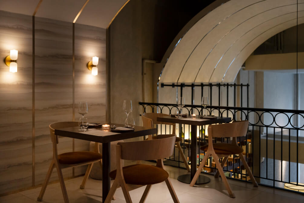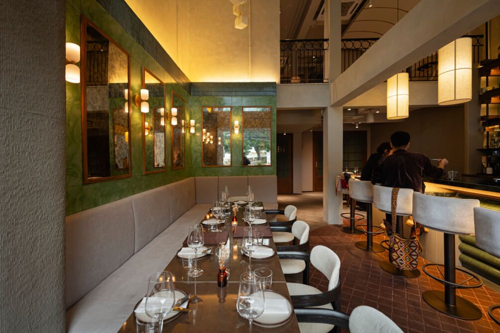 ไม่เพียงแต่คอนเซ็ปต์อาหารที่มีความแปลกใหม่ไม่เหมือนใคร ด้านบรรยากาศและการตกแต่งภายในร้านยังออกแบบมาได้อย่างสวยงามลงตัว ทั้งเฟอร์นิเจอร์ โทนสี และแสงไฟสลัว ๆ ในมู้ดที่อบอุ่น เหมาะแก่การมา Dining กับคนพิเศษ