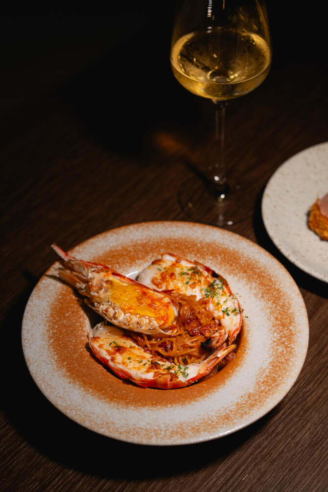 จัดเต็มความอร่อยอย่างต่อเนื่องกันด้วยหมวด Sea ที่เลือกใช้วัตถุดิบซีฟู้ดเป็นหลัก ในหมวดนี้ขอแนะนำเมนู Catch of the Day (ราคาตามวัตถุดิบประจำวัน) เมนูพิเศษที่ทางร้านเลือกใช้วัตถุดิบตามที่มีในประจำวัน ซึ่งแต่ละวันจะเปลี่ยนไปเรื่อย ๆ ตามวัตถุดิบคุณภาพที่มี ครั้งนี้เสิร์ฟเป็นเมนู ‘พาสต้า (เส้นสด) กุ้งแม่น้ำ’ โดยวัตถุดิบไฮไลท์คือ ‘กุ้งแม่น้ำ’ ตามธรรมชาติ มีความเป็น Excotic ที่ให้ทั้งความคลีนและกลิ่นหอมชวนรับประทาน เพื่อเป็นการมอบความพิเศษให้กับลูกค้าที่มาดินเนอร์ในวันนั้น ๆ โดยเฉพาะ
