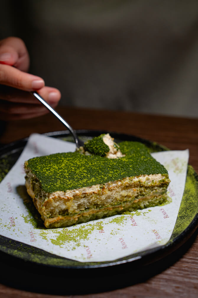 ปิดท้ายการดินเนอร์มื้อพิเศษนี้กันด้วย หมวด Dessert กับเมนู Tiramiso (220 บาท) สำหรับเมนูนี้ทางร้านตั้งใจใช้ชื่อว่า ‘ทีรามิโสะ’ เพราะใส่ส่วนผสมของมิโสะเข้าไปด้วย ซึ่งโดยปกติแล้วทีรามิสุจะใช้เกลือเพื่อดึงรสชาติของตัวขนมหวานให้ชัดขึ้น ซึ่งทางร้านได้ปรับมาใช้เป็นมิโสะแทนเกลือ รวมถึงการเลือกใช้ผงมัทฉะโรยหน้าขนม เพื่อเสริมกิมมิกให้ได้กลิ่นอายของความเป็นญี่ปุ่นอีกเช่นเคย