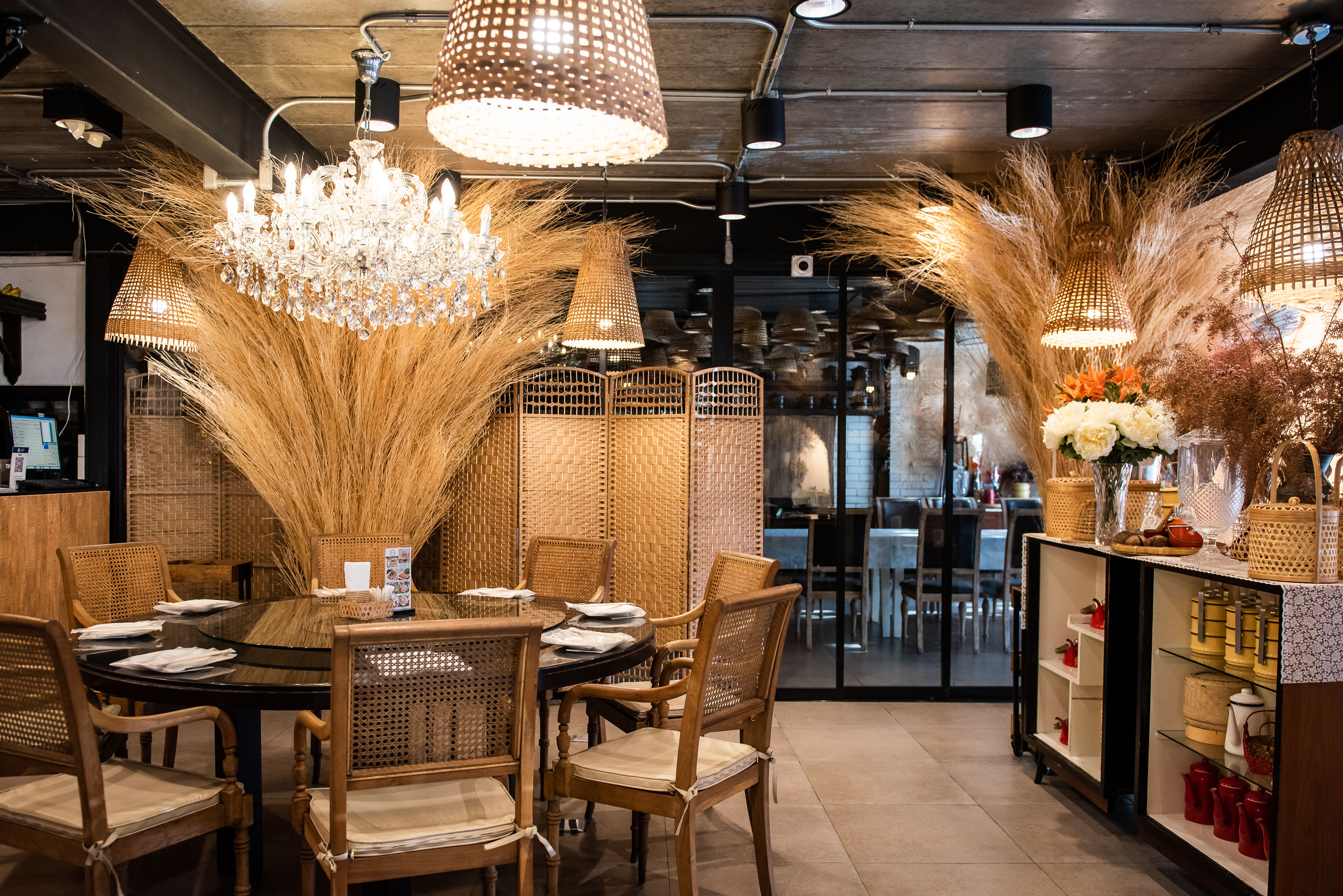 บรรยากาศการตกแต่งสไตล์ไทยโมเดิร์น ที่เพิ่มกิมมิกด้วยเครื่องจักสาน