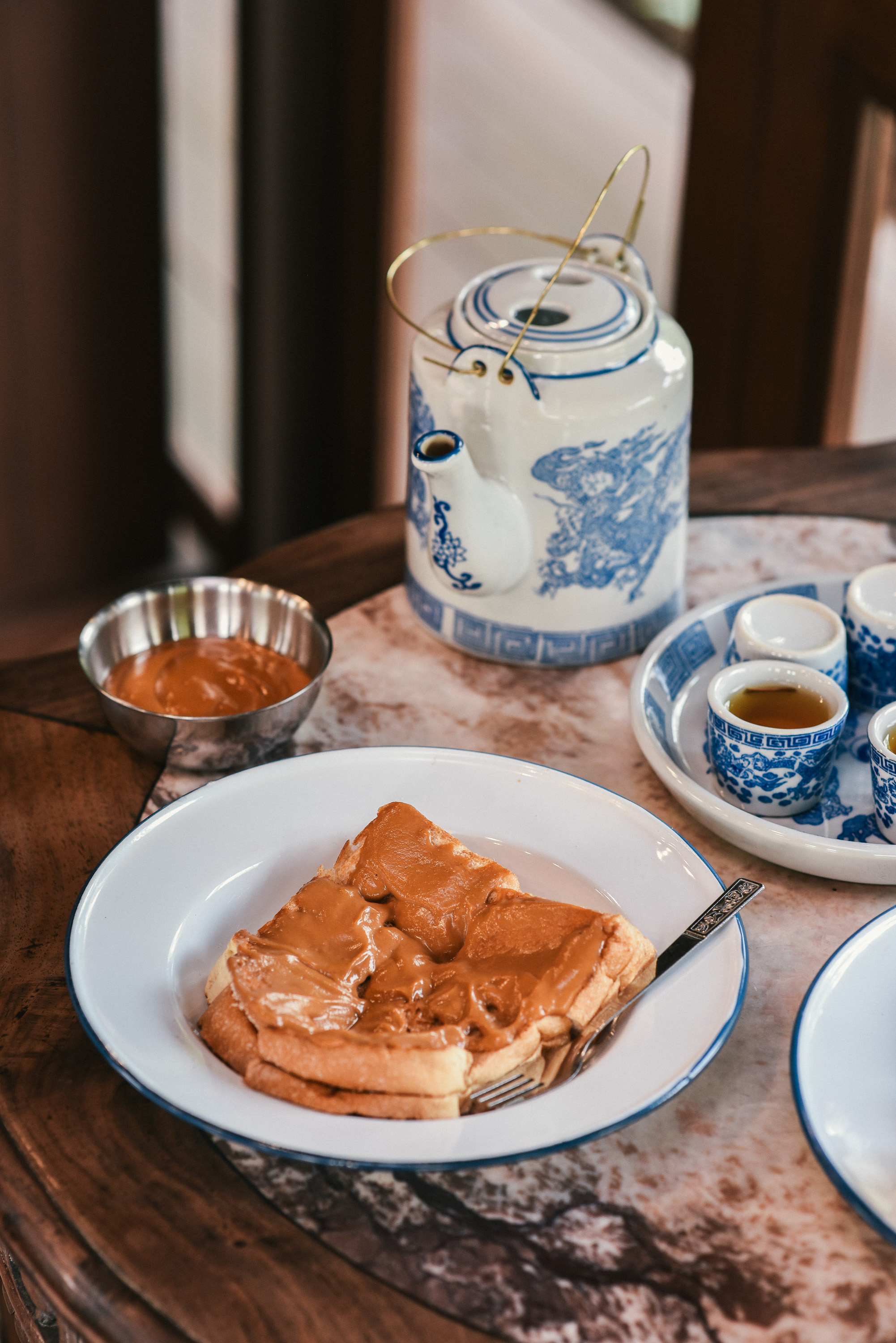 ถัดจากเมนูเครื่องดื่ม เพื่อให้อิ่มอร่อยแบบครบสูตร ต้องสั่งขนมปังปิ้งหรือขนมปังนึ่งสูตรโบราณมาลองทานกันด้วย สำหรับขนมปังปิ้ง ขอแนะนำ ขนมปังปิ้งสังขยาชาไทย (45 บาท) ขนมปังปิ้งสูตรโบราณที่ให้เนื้อสัมผัสแบบกรอบนอกนุ่มใน โดยเสิร์ฟมาพร้อมกับสังขยารสชาไทยหอมหวานละมุนให้ทานคู่กัน ก่อนจะท้าชิงความอร่อยด้วย ขนมปังปิ้งน้ำพริกเผา + หมูหยอง (55 บาท) ขนมปังปิ้งสูตรโบราณที่ทาด้วยน้ำพริกเผา พร้อมโรยหน้าด้วยหมูหยองมาแบบเต็มแผ่น ให้รสเข้มข้นกลมกล่อมแบบไทย ๆ ถูกใจคนชอบทานน้ำพริกเผาแน่นอน