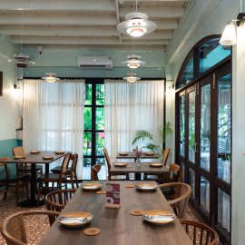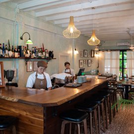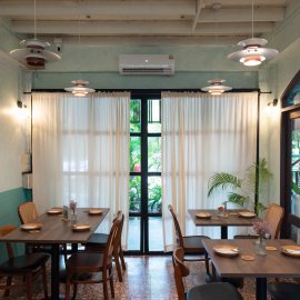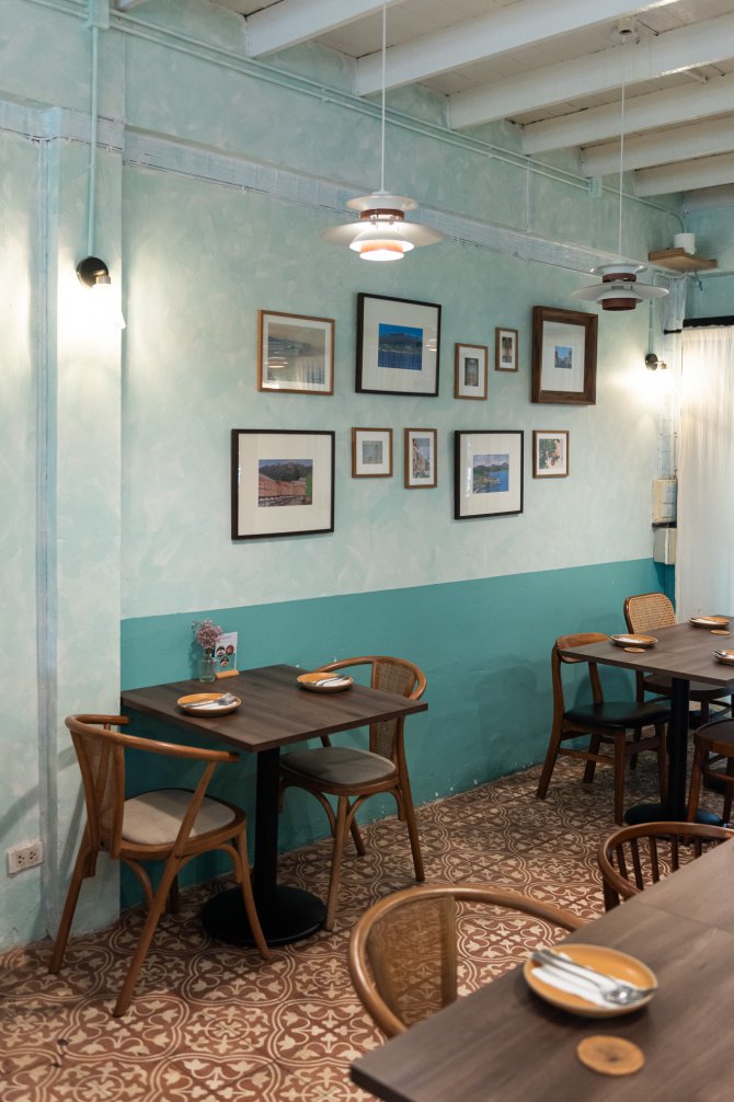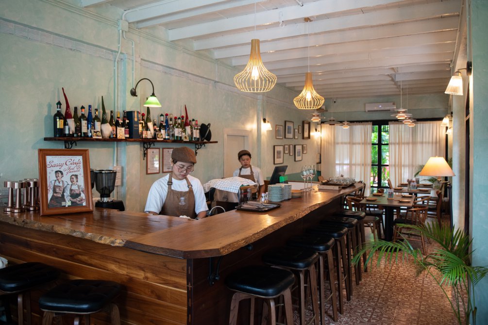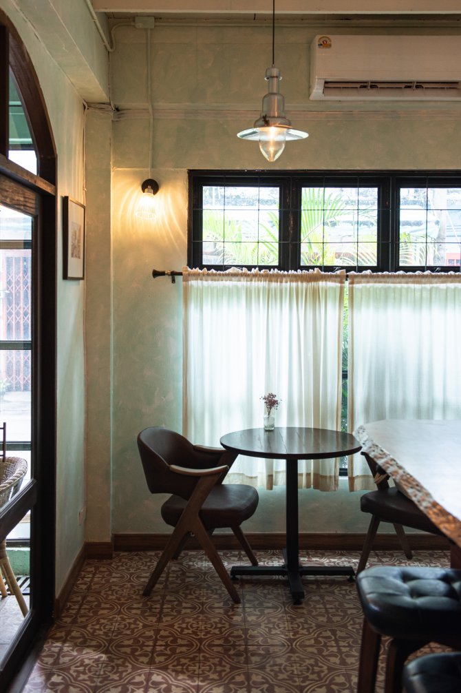 บรรยากาศภายในร้านตกแต่งร้านสไตล์วินเทจ ตามความชอบส่วนตัวของเชฟใบตอง เต็มไปด้วย Vibes อบอุ่นสุดคลาสสิก โดยเชฟใบตองได้เลือกนำของของเก่าของสะสมจากทางคุณพ่อมาตกแต่งเพิ่มเติม เพื่อเสริมความโฮมมี่และความผูกพันเข้ากับสถานที่แห่งนี้มากยิ่งขึ้น ด้วยความตั้งใจให้พื้นที่นี้ได้มอบความทรงจำดี เป็นเหมือนเซฟโซนที่ทุกคนแวะมาเอ็นจอยมื้ออาหารกับก๊วนคนสนิทเมื่อไหร่ก็แฮปปี้เสมอ