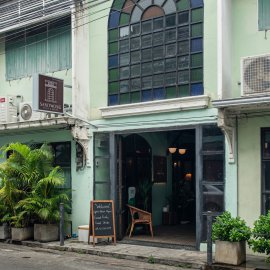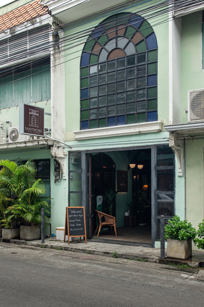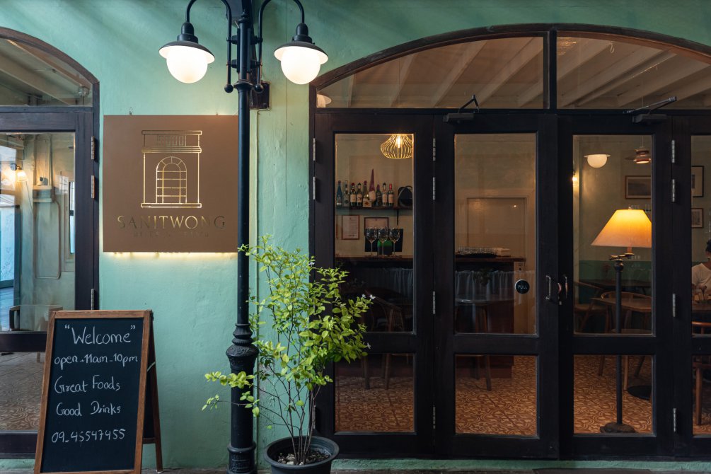 บริเวณอาคารทางเข้าร้าน Sanitwong Bites & Brews