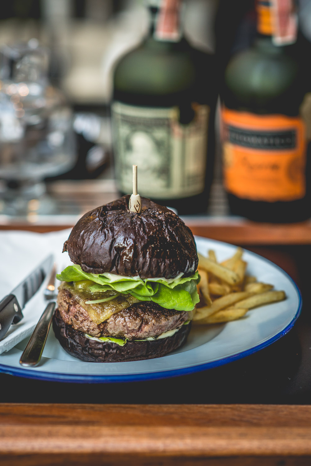 เนื่องจากที่นี่เป็นบาร์ที่เพิ่งมีเมนูอาหารเข้ามาเสริมได้ไม่นานมากนัก ทำให้มีอาหารให้เลือกไม่มาก มีอาหารทานเล่นเป็นกับแกล้มและอาหารเป็นจาน ๆ ที่ทานได้อิ่มอย่างสบาย ๆ อย่างเช่น Big Black Burger (380 บาท) เบอร์เกอร์เนื้อวากิวชิ้นใหญ่ในบันดาร์กช็อกโกแลต หรือลองทาน Soi Dog (280 บาท) ไส้กรอก Cervelat ซอสมายองเนส พริกเม็กซิกัน และเช็ดด้าชีสในบันดาร์กช็อกโกแลต