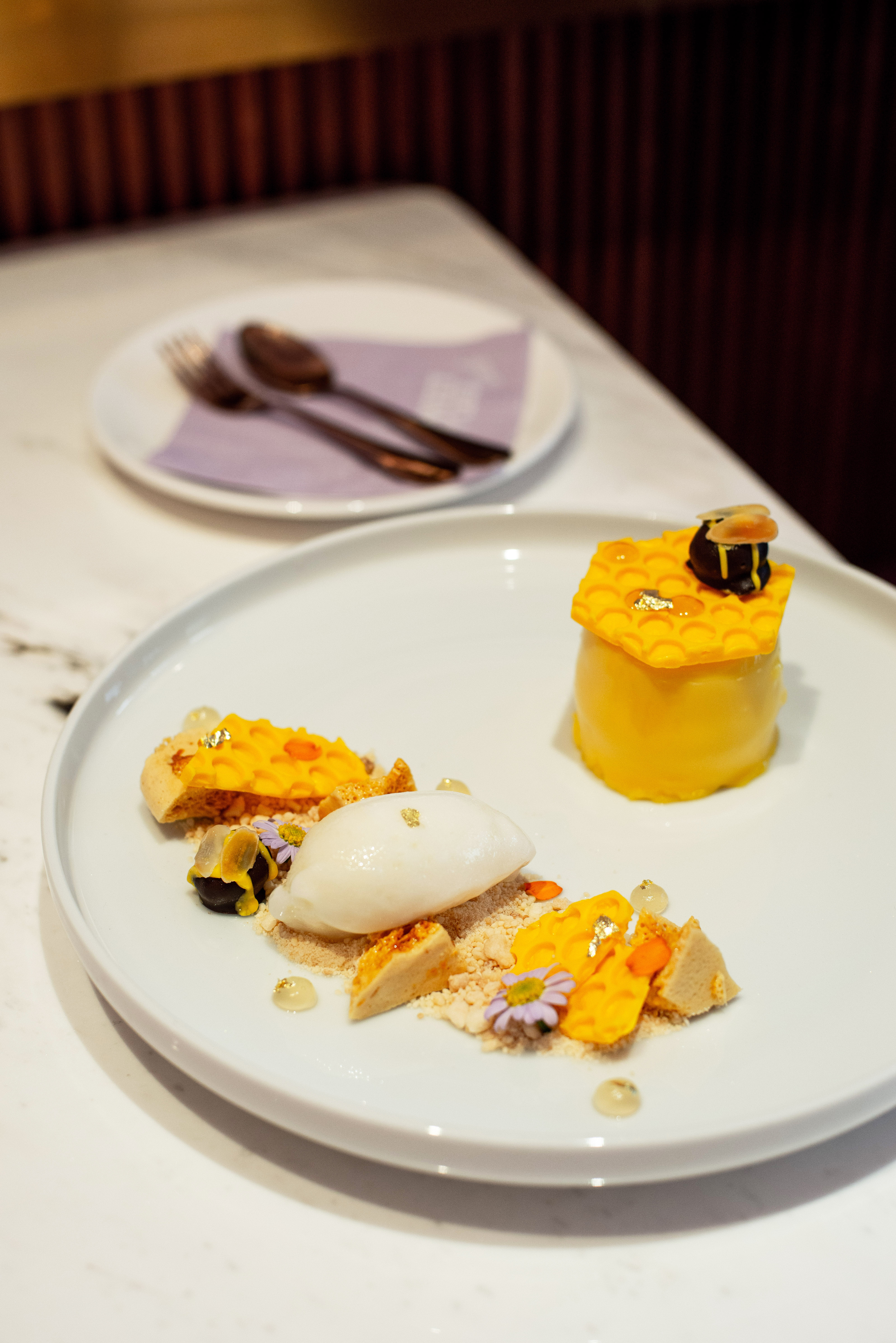 เริ่มต้นความอร่อยด้วยเมนูดี ๆ จาก Sweet Chef Thailand Episode 1 อย่าง มูสหยดน้ำผึ้ง (325 บาท) เมนูสุดพิเศษจาก คุณโนเบล-ผู้เข้าแข่งขัน ที่จับคู่ความอร่อยรสเปรี้ยวอมหวานมาผสานไว้ด้วยกันผ่านมูสเลมอนครีมชีสแบบเสิร์ฟเย็น ที่สอดไส้มาด้วยเจลลี่ยูซุผสมน้ำผึ้ง, มะม่วงสุกและสปันจ์เค้กวานิลลา เคลือบด้วยไวท์ช็อกโกแลต เสิร์ฟมาพร้อมกับคุกกี้น้ำผึ้งหอมหวาน และไอศกรีมยูซุที่มาตัดรสชาติกันได้เป็นอย่างดี
