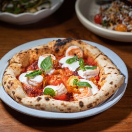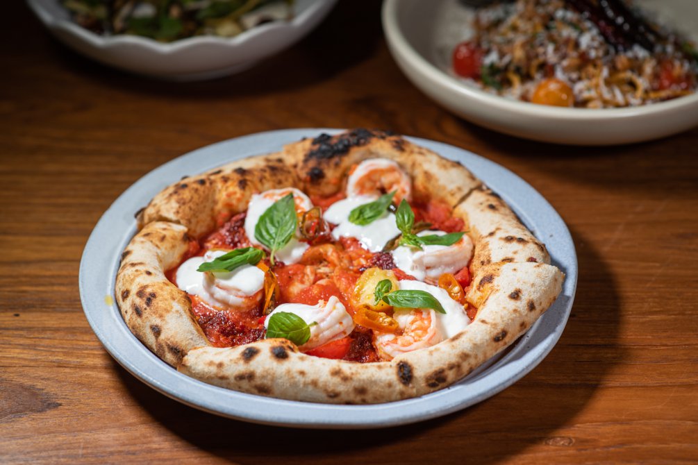 ส่วนใครเป็นสายพิซซาลองเป็น Prawn Nduja Pizza (420 บาท) พิซซาขอบบางหนึบ อบด้วยอุณหภูมิสูงให้ได้แป้งที่หอมกรอบนอกนุ่มในในแบบต้นตำรับจากเมืองเนเปิลส์ ท็อปด้วยความจัดจ้านจาก Nduja ไส้กรอกหมูสไปซี่ที่มีรสเผ็ดร้อน หอมกลิ่นพริกและสมุนไพร ผสานกับ กุ้งตัวโต ที่ให้รสหวานธรรมชาติ เสริมความนุ่มละมุนด้วย Stracciatella ชีสสดเนื้อครีมมี่ที่ให้รสเบา ๆ ตัดกับความเผ็ดได้พอดี ตามด้วย Chili หมัก เพิ่มมิติของความเผ็ดร้อนแบบ และ ใบโหระพาอิตาเลียน เพิ่มความหอมสดชื่นให้จานนี้สมบูรณ์แบบ