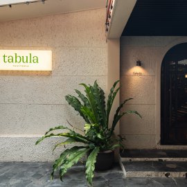 หรือจะนั่งในโซน In Door ที่โดดเด่นด้วย Open Kitchen ครัวเแบบเปิด ที่เปิดโอกาสให้แขกทุกคนได้ชมขั้นตอนการปรุงอาหารและการทำงานของทีมเชฟได้อย่างใกล้ชิด ส่วนใครที่เป็นสายดื่มอยากดื่มด่ำกับลิสต์ไวน์นานาชนิดที่แนะนำโดยซอมเมลิเยร์มือฉมังสามารถเอนจอยได้ในโซน Tappo Wine Bar โดยชื่อ Tabula มาจากคำว่า Tabula Rasa ที่หมายถึง หินอ่อนขัดใหม่ ในภาษาละติน ที่สอดคล้องกับคอนเซ็ปต์ของร้านที่ต้องการสร้างสรรค์เมนูใหม่ ๆ ปรุงอย่างปราณีต เหมือนกับหินอ่อนขัดใหม่ที่เปี่ยมไปด้วยความสวยงาม ความสดใหม่และมีคุณภาพ