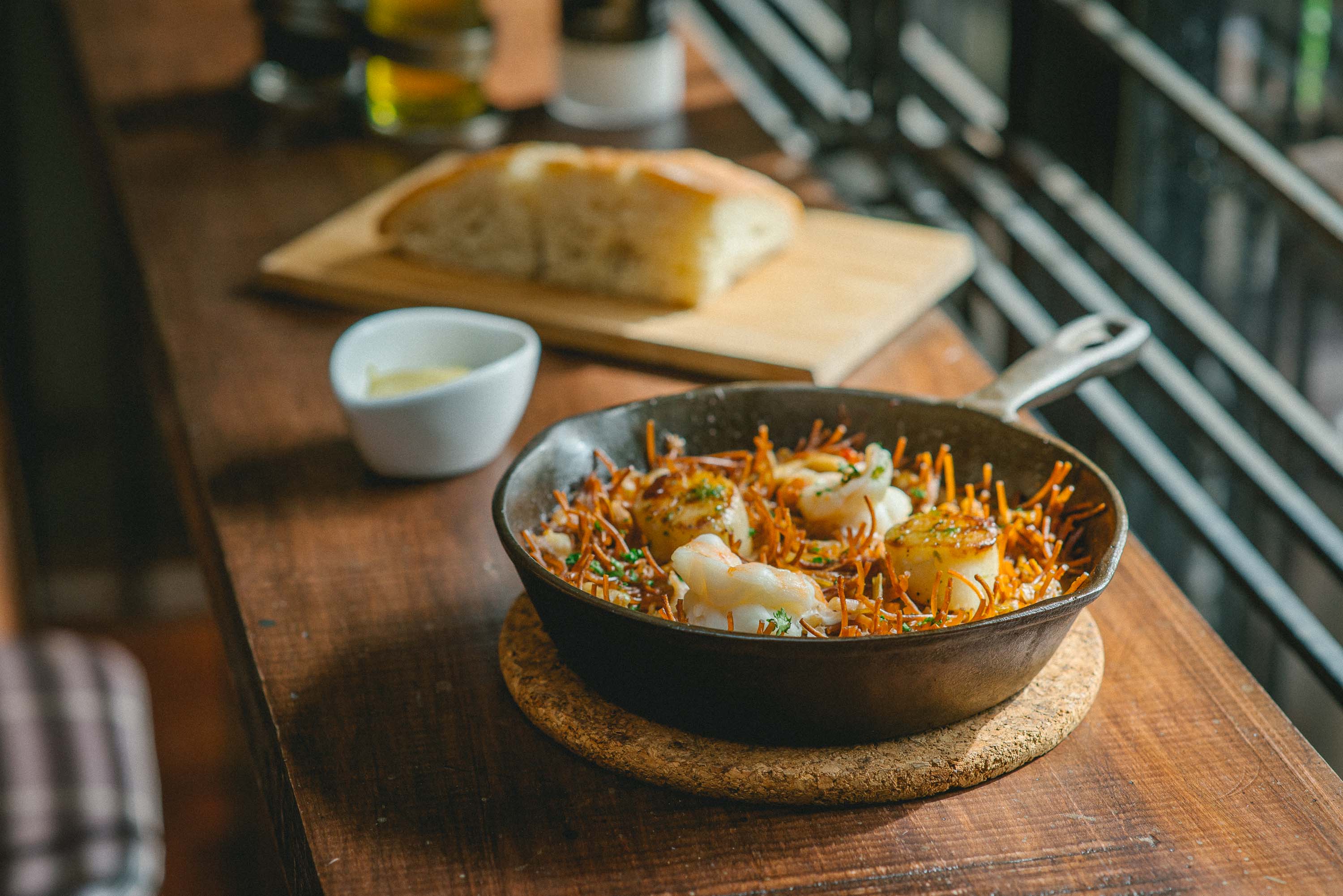 ใครที่มองหาจานอิ่มท้อง แนะนำ Fideuà (380 บาท) เมนูอาหารสเปนที่หาทานได้ยาก เป็นพาสต้าที่นำไปตัดชิ้นเล็ก ๆ อบจนได้เส้นส้มอมเหลืองกรุบกรอบ ผัดกับกุ้งและหอยเชลล์ ทานคู่กับซอส Aioli รสชาติคล้ายมายองเนส แต่เบาและมันน้อยกว่า