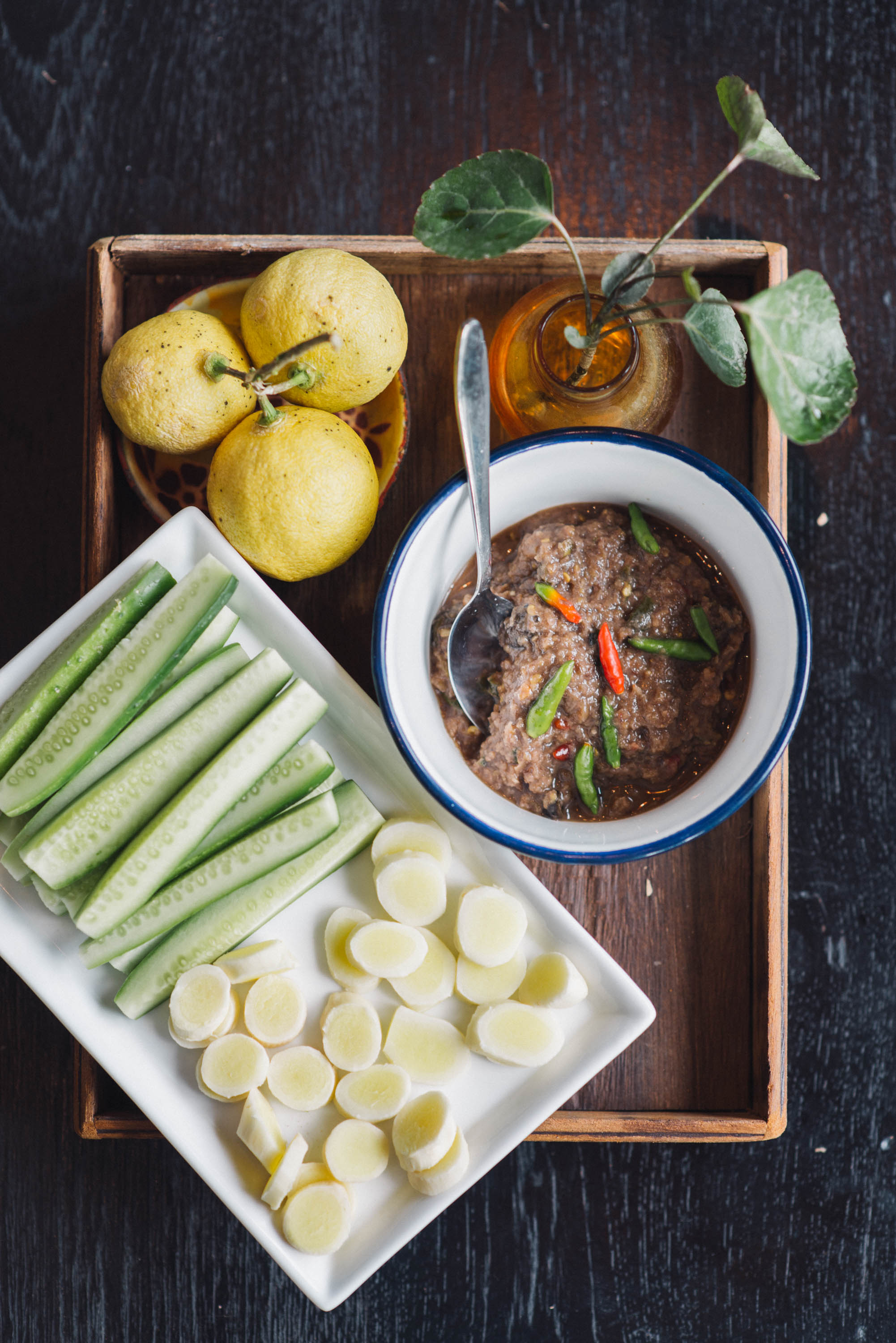 ก่อนจะปิดท้ายเซ็ตอาหารมื้อนี้ด้วย น้ำพริกกะปิ (150 บาท) โดยทางร้านเลือกใช้กะปิที่ทำจากกุ้งแห้งเยอะเป็นพิเศษ จึงได้น้ำพริกกะปิเนื้อข้นที่ให้รสเข้มข้น เค็มนำ เปรี้ยวตาม เสิร์ฟมาพร้อมเครื่องเคียงผักสด ตัดรสชาติกันอย่างลงตัว