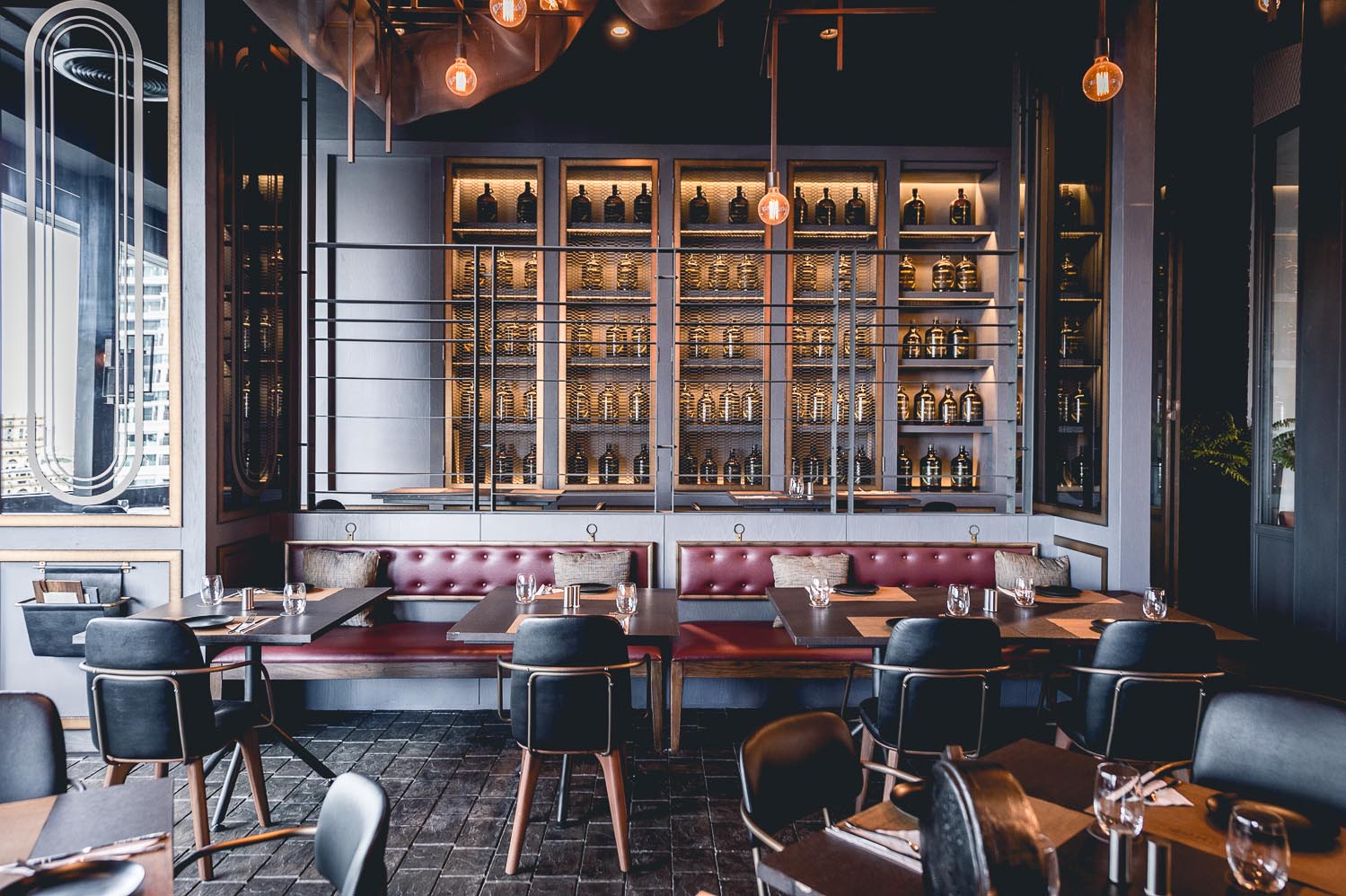 The Chop เป็นร้านอาหารสไตล์อเมริกันบนชั้น 9 โซน Helix ของ EmQuartier ที่ทำให้นึกถึงบรรยากาศร้านอาหารและบาร์เท่ ๆ ในกรุงนิวยอร์ก ที่ตกแต่งด้วยการใช้สีโทนเข้มอย่างสีดำทั้งโต๊ะ เก้าอี้ และพื้น แต่ยังเพิ่มลูกเล่นด้วยสีทองหม่น ๆ บนผนัง ให้ดูมีความคลาสสิกและมีกลิ่นวินเทจเล็ก ๆ โซฟาหนังสีแดงตัวยาวทำให้เรานึกถึงบรรยากาศร้านอาหารในต่างประเทศ ดูสวยงามลงตัวเข้ากับร้าน นอกจากนั้นยังมีหลอดไฟสีส้มหลายสิบดวงที่ห้อยลงมาจากเพดาน ช่วยเพิ่มความอบอุ่น และเบรกความเคร่งขรึมไว้ให้ร้านดูสบาย ๆ มากขึ้น