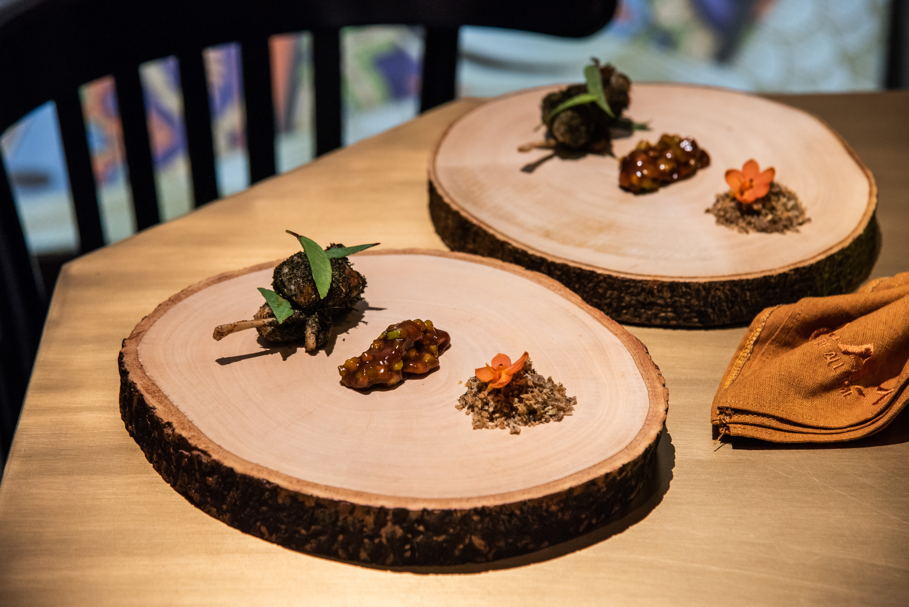ต่อกันที่ Magic Frog จานที่ได้แรงบันดาลใจมาจากขนม Magic Pop ในสมัยก่อน ซึ่งเชฟคัดขากบคุณภาพจากจังหวัดอ่างทอง นำไปเซียร์จนกรอบนอกนุ่มใน แล้วโรยด้วยผักแพวแห้ง ท็อปด้านบนด้วยใบกระเจี๊ยบที่ให้รสเปรี้ยว แนะนำให้หยิบขากบมาจุ่มที่ซอสมะม่วงน้ำปลาหวานผสมตะลิงปิง ก่อนจะชุบด้วยครัมเบิ้ลมะแขว่นหนังกบทอด ให้ความกรุบกรอบเหมือนกินขนมเป๊าะแป๊ะ ตกแต่งด้วยดอกเอื้องเข็มแสดที่ให้รสชาติคล้ายกับส่วนเนื้อสีขาวของแตงโม ได้ความเย็นสดชื่นทานได้เพลิน ๆ
