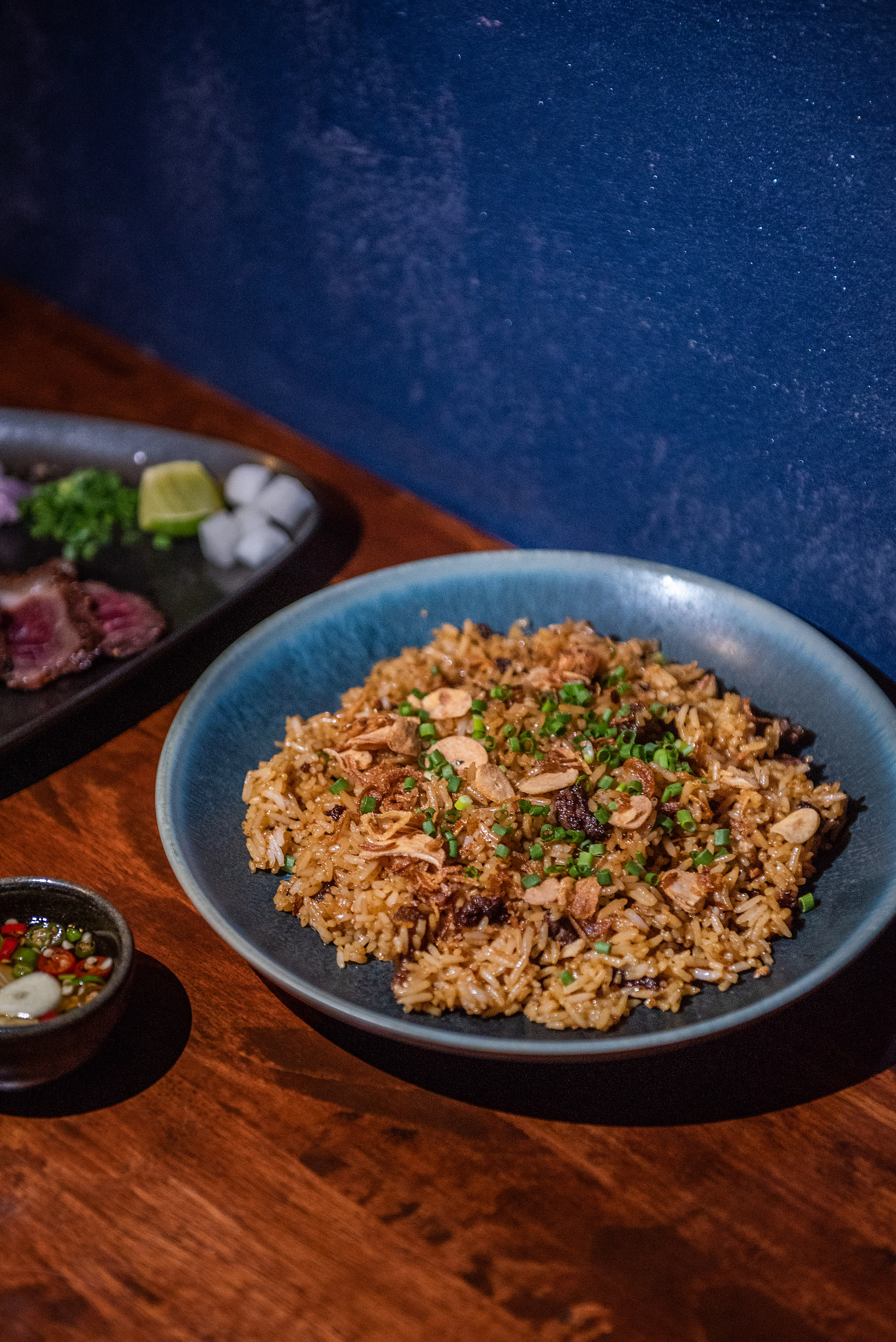 ต่อด้วยจานอิ่มท้องอย่าง ข้าวผัดมันเนื้อ (190 บาท) ข้าวผัดที่เชฟใช้มันเนื้อผัดแทนน้ำมันให้กลิ่นหอมของเนื้อแทรกซึมเข้าไปในตัวข้าวมากที่สุด จากนั้นผัดคลุกเคล้าไปกับเนื้อหั่นชิ้นเล็ก ๆ ท็อปด้วยกระเทียมเจียวเข้ากันเป็นอย่างดี