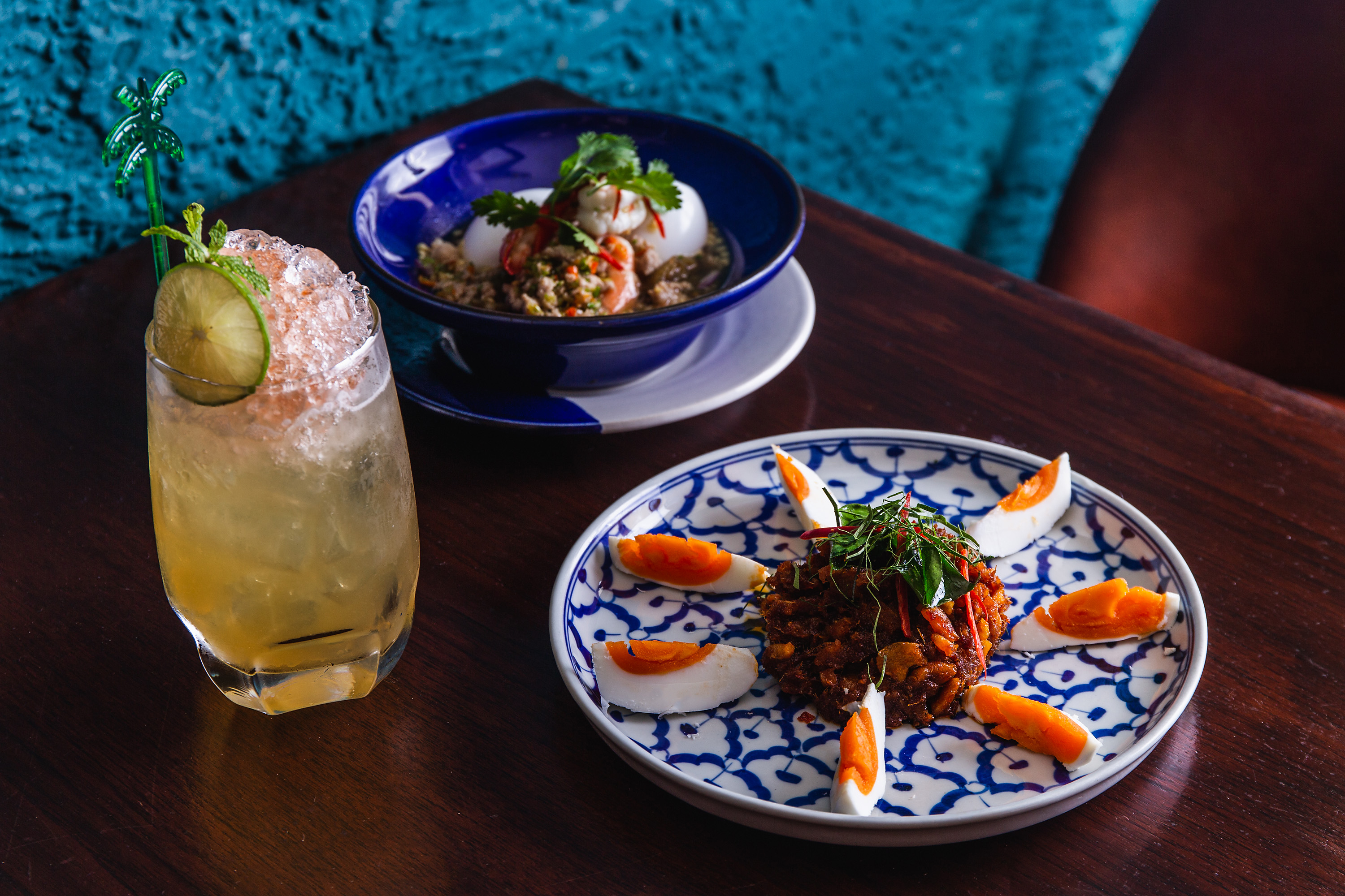 เนื้อริบอายย่างจิ้มแจ่ว (358 บาท) เนื้อริบอายหมักเครื่องเทศ ที่คัดสรรพิเศษมาจาก Thai-French Butchery นำมาย่างบนเตาถ่านให้สุกพอดี ทำให้เนื้อมีความนุ่มและชุ่มช่ำ ทานคู่กับน้ำจิ้มแจ่วรสครบเครื่องทั้งพริก ข้าวคั่ว  มะขาม มะนาวสด โดยทางร้านเลือกใช้วัตถุดิบเครื่องปรุงของไทยที่มีคุณภาพ ช่วยเสริมให้รสชาติอาหารอร่อยมากยิ่งขึ้น ส่วนใครที่อยากจิบเครื่องดื่มเย็น ๆ นั่งชิลล์ไปกับบรรยากาศที่มีดนตรีคลอไปตลอดทั้งคืน ขอแนะนำ Tiger Never Dies เสือตายยาก (280 บาท/แก้ว และ 780 บาท/เหยือก) ค็อกเทลหวานอมเปรี้ยวที่หวานซาบซ่าจาก Gin Vodka, Vanilla Lime และ Grenadine สีแดงสวย