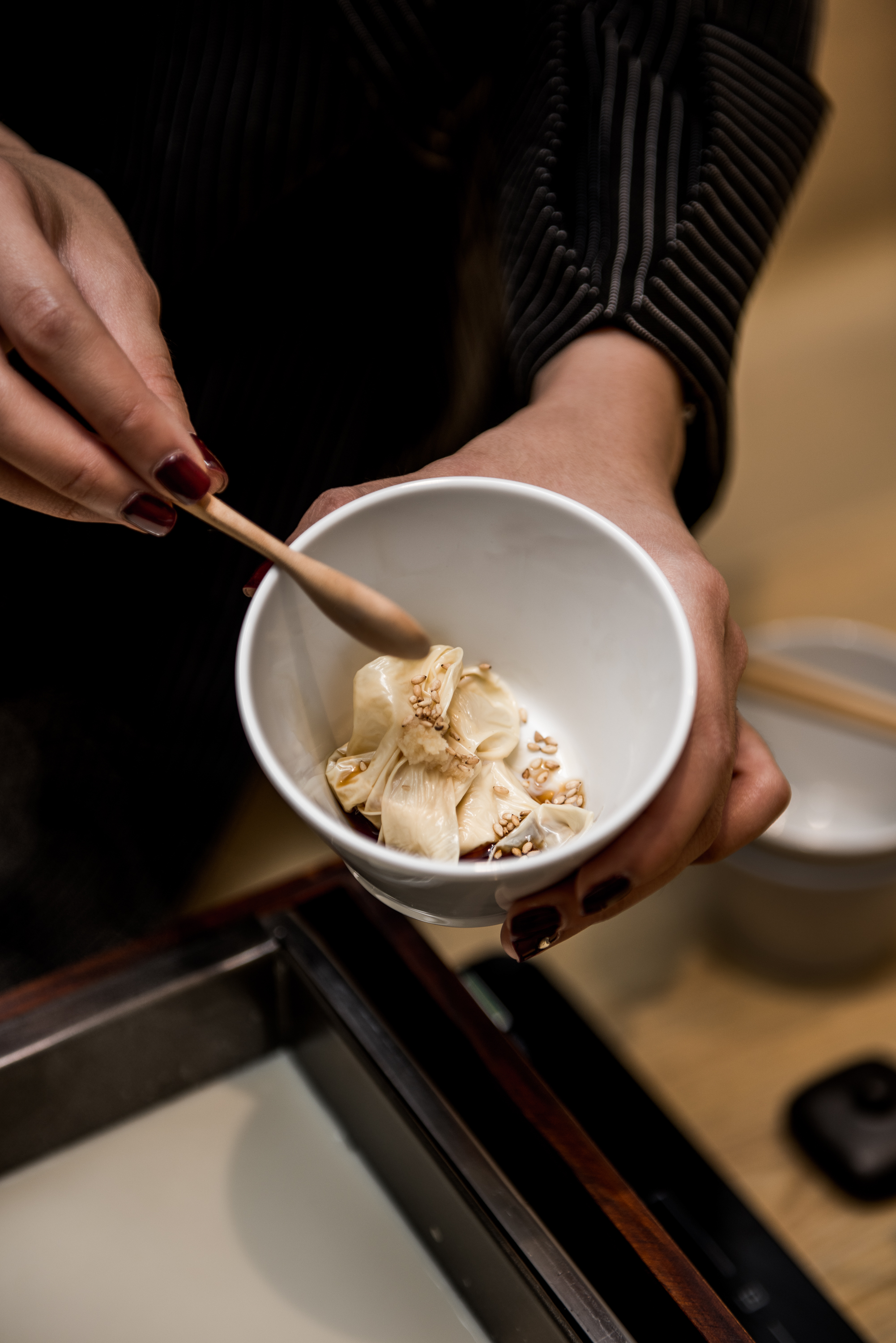 สำหรับเมนูอาหารของที่นี่ มีทั้งเมนูยอดนิยมจากร้าน Umenohana ที่นำมาปรับใหม่ให้ทานง่ายขึ้น รวมถึงเมนูที่ถูกสร้างสรรค์ใหม่ โดยยังคงคอนเซ็ปต์สไตล์เฮลตี้เอาไว้ ทำให้แต่ละเมนู ทานแล้วจะไม่หนักเกินไป เริ่มจากเมนู D.I.Y Yuba (220 บาท) ชุดทำฟองเต้าหู้สด หนึ่งในเมนูขายดีของ Umenohana ที่ให้ทุกคนได้สนุกกับการทำฟองเต้าหู้เอง สามารถคีบทานได้ทีละชิ้น หนึ่งชุดสามารถทำฟองเต้าหู้ได้ประมาณ 20 ชิ้น ทานคู่กับซอสโชยุ งา และผิวส้มยูสุ