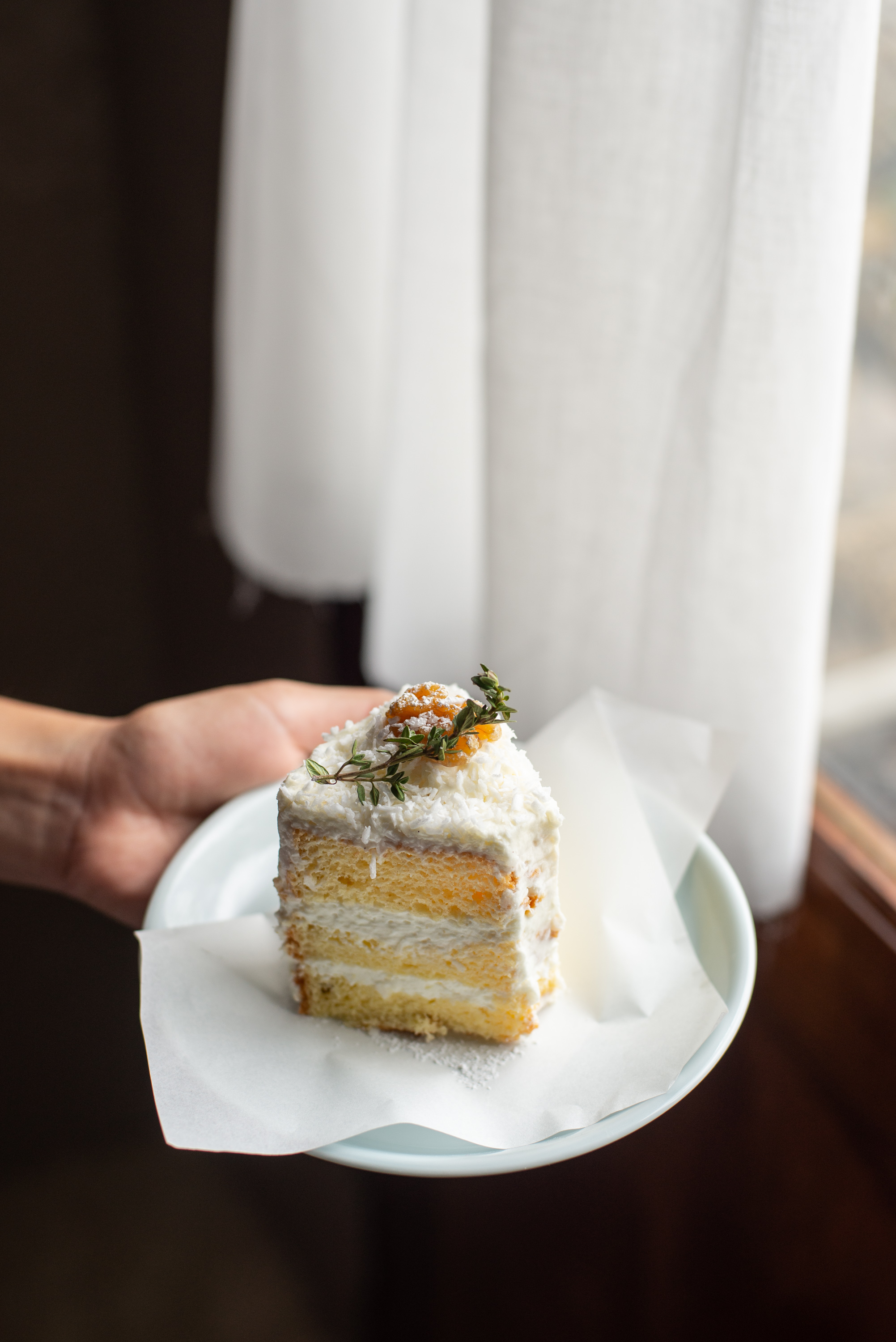 หรือจะเป็นเค้กมะพร้าวอย่าง Snow White Coconut Cake (145 บาท) ที่เอาใจคนชอบทานมะพร้าวเป็นพิเศษ โดดเด่นด้วยเนื้อสัมผัสของครีมนุ่ม ๆ ตามด้วยเกล็ดมะพร้าวให้เคี้ยวกันเพลิน ๆ และกลิ่นหอมของมะพร้าวแบบเต็ม ๆ คำ