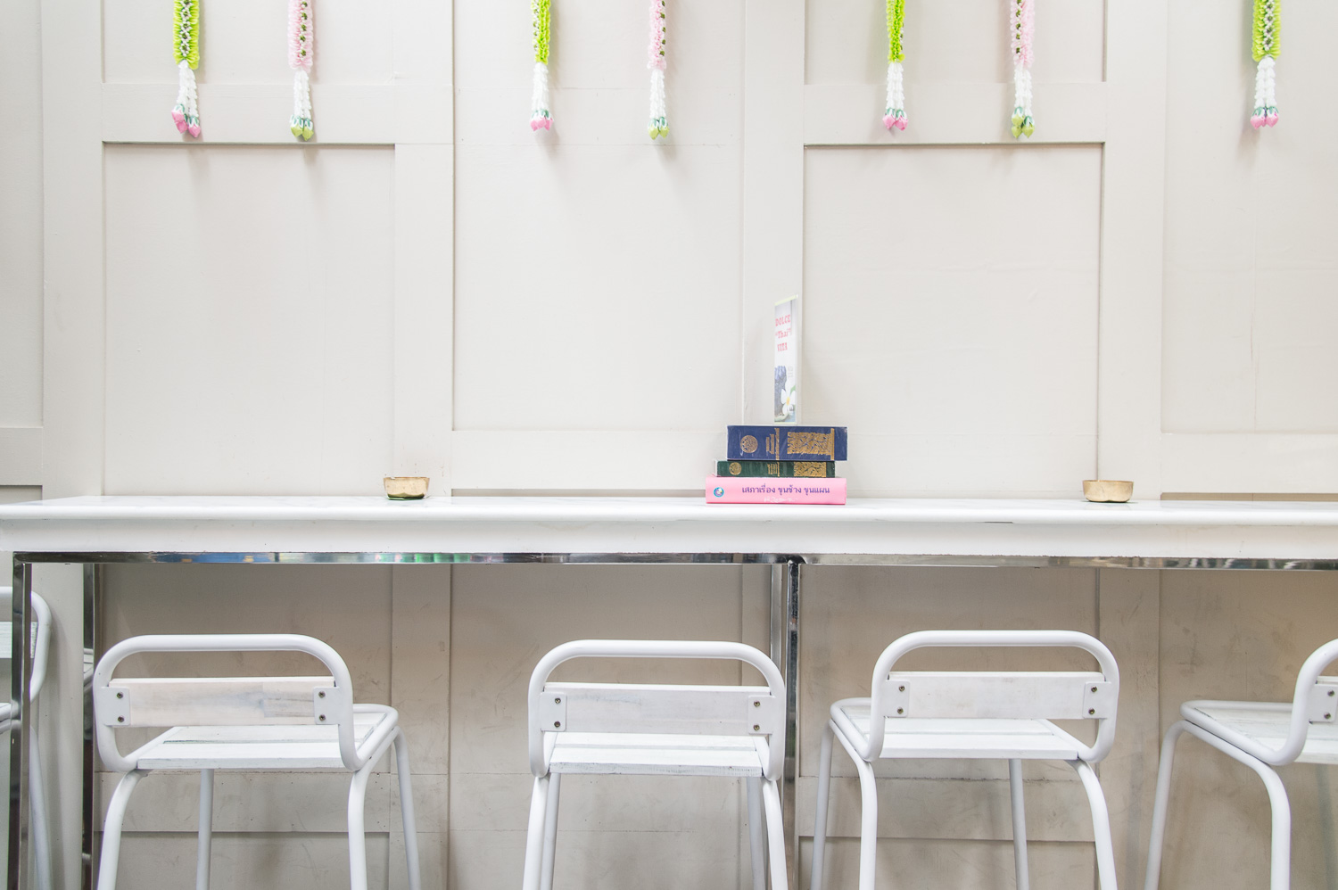 ร้านสีขาวสะอาดตาแห่งนี้ตั้งอยู่ในโครงการ 26 ของตลาดนัดสวนจตุจักร ท่ามกลางร้านค้าที่มีผู้คนเดินผ่านไปมามากมาย โดยเฉพาะในช่วงสุดสัปดาห์ ทำให้ร้านนี้กลายเป็นโอเอซิสให้ใครหลายคนได้มาพักขาหลังการเดินช้อปปิ้ง