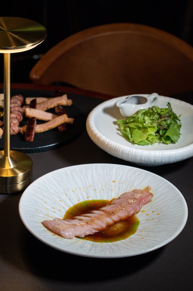 เมนูอาหารที่ทางร้านแนะนำในครั้งนี้ ได้แก่ จุ๊ปลาสลัดน้ำมันงา (230 บาท) ที่นำปลานิล (เลี้ยงในฟาร์มแบบระบบปิด) มาเป็นวัตถุดิบ เนื้อแน่นสดเด้ง ไร้กลิ่นขาว เสิร์ฟให้รับประทานแบบซาชิมิ ใส่ซอสพอนสึรสเปรี้ยวอมหวานทานแล้วสดชื่น พร้อมด้วยสลัดน้ำมันงาให้ได้อิ่มอร่อยคู่กัน
