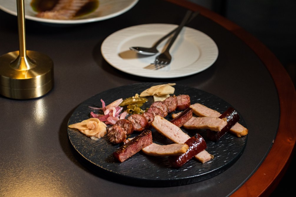 ตามด้วย Sakon Party (175 บาท) เซ็ตเมนูรวมไส้กรอกไทย-อีสาน ส่งตรงวัตถุดิบจากจังหวัดสกลนคร ประกอบไปด้วย หมูยอ กุนเชียง และไส้กรอกอีสาน ที่ทางร้านนำไปรมควัน ให้ได้กลิ่นสโมคหอม ๆ และรสชาติที่กลมกล่อมแตกต่างกันไป เสิร์ฟมาพร้อมผักดอง 4 อย่างของทางร้าน ซึ่งล้วนเป็นผักที่ทางร้านดองเองทั้งหมด อาหารเซ็ตนี้สามารถแพริ่งคู่กับเครื่องดื่มของทางร้านได้แบบหลากหลาย ไม่ว่าจะเป็นไวน์ สาโท หรือค็อกเทล ก็เสริมรสชาติได้เข้ากันดีทีเดียว