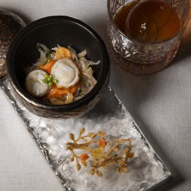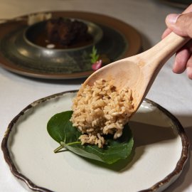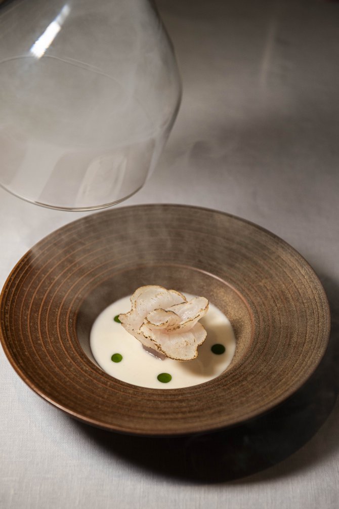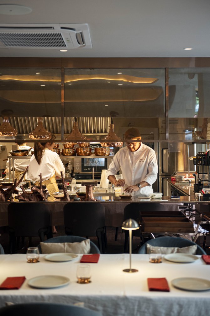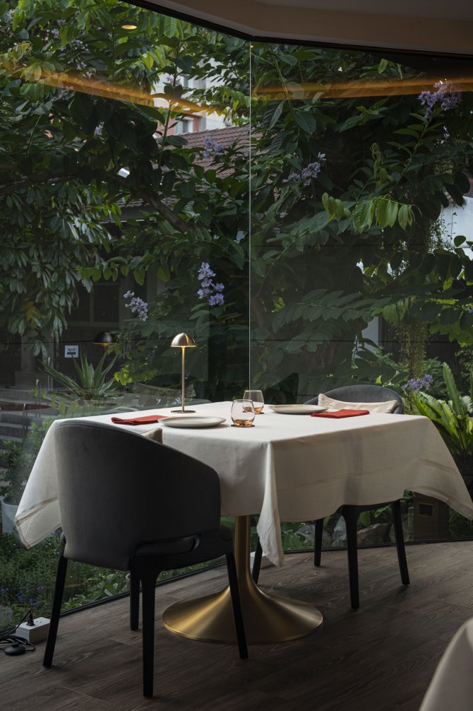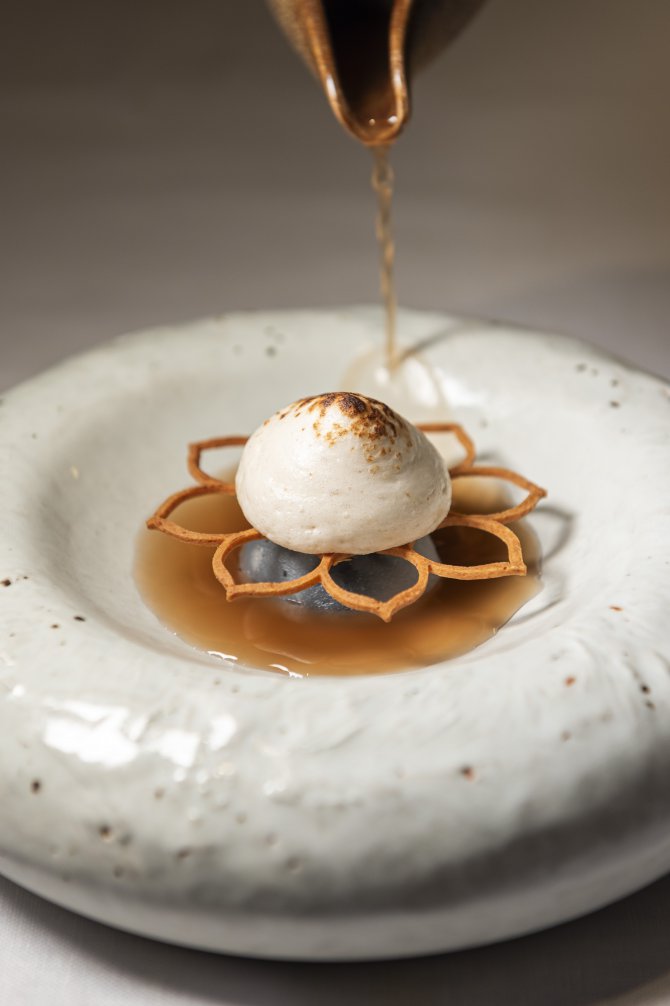 บรรยากาศของร้านออกแบบมาให้รู้สึกสงบและอบอุ่นในคราวเดียวกัน ในโทนสบาย ๆ เปิดพื้นที่ให้ผู้มาเยือนได้โฟกัสกับอาหารตรงหน้าอย่างเต็มที่ ทุกจานถูกเสิร์ฟเหมือนงานศิลปะที่เชื่อมโยงอดีตกับปัจจุบัน ทั้งในแง่รสชาติ การจัดวาง และเรื่องราวที่ซ่อนอยู่ในรายละเอียดเล็ก ๆ