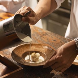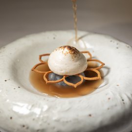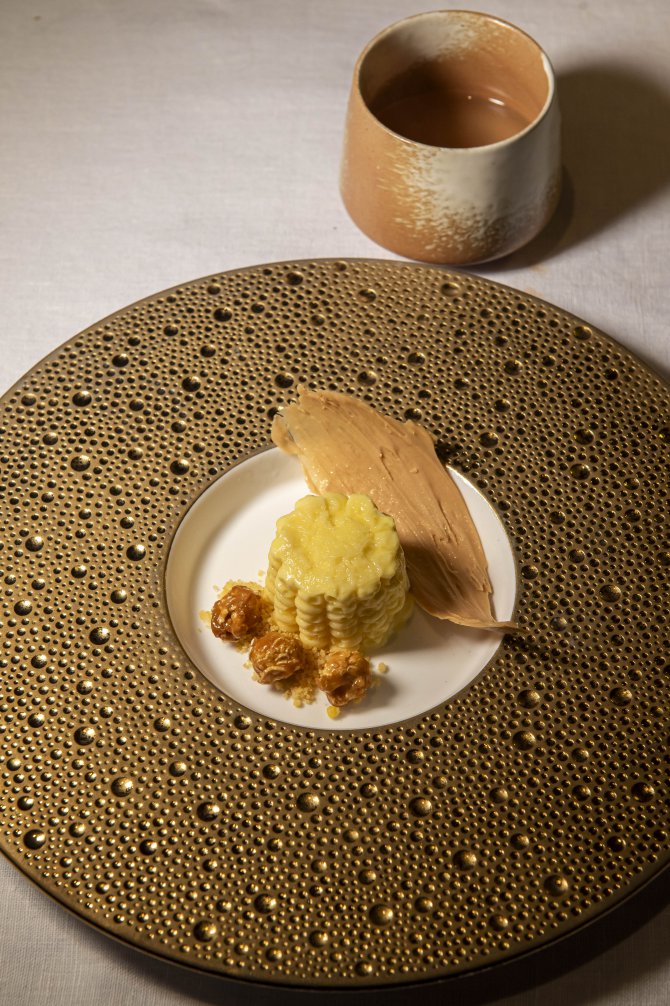 ปิดท้ายด้วยของหวานที่ยังคงแนวคิดในการนำรสชาติเก่ามาตีความใหม่ อย่าง ทองสุวรรณ จากข้าวโพดทุกองค์ประกอบ และบัวลอยน้ำขิงที่ให้สัมผัสหนึบคล้ายดังโงะ แต่ยังคงกลิ่นอายไทยอย่างชัดเจน
