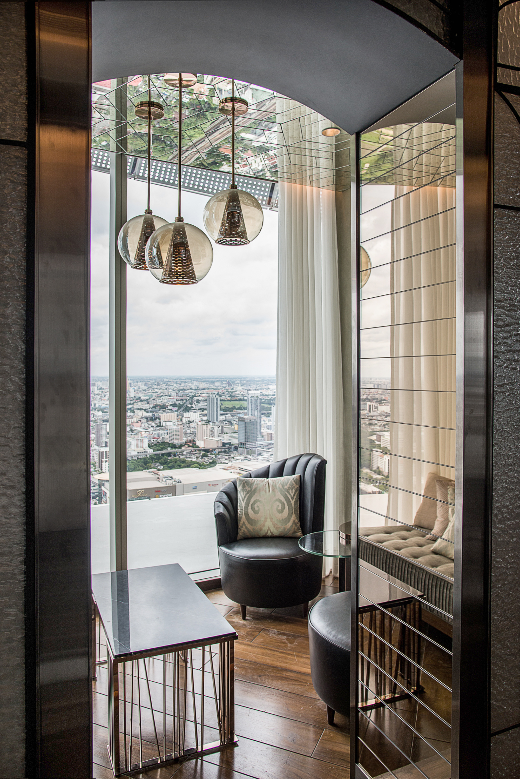 และ The Champagne Bar ที่ตั้งอยู่บนชั้น 57 ชั้นสูงสุดของโรงแรม ให้บริการแชมเปญ ค็อกเทลสุดครีเอทีฟ พร้อมวิวที่สวยที่สุดของกรุงเทพฯ ในบรรยากาศที่เป็นส่วนตัว