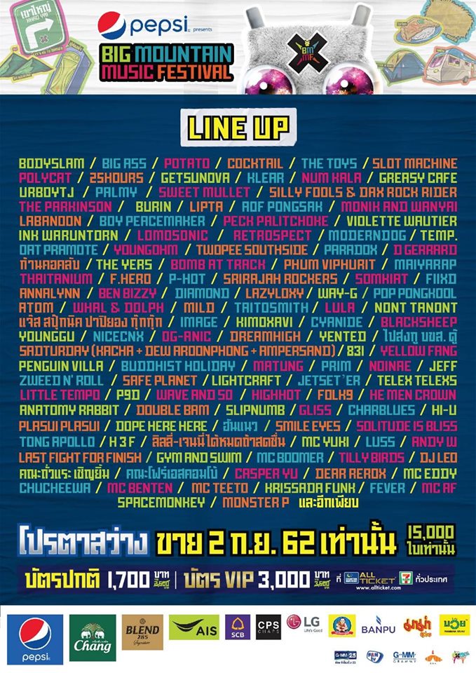 เตรียมตัวให้พร้อมแล้วมาแปะกันให้มันใหญ่มากกับเทศกาลดนตรีที่ยิ่งใหญ่ที่สุดในประเทศไทย Big Mountain Music Festival 2019 ที่จัดเต็มมาในธีม ‘เมื่อเราแปะกัน แล้วมันใหญ่มาก’ ในวันที่ 7 - 8 ธันวาคม 2562 ณ The Ocean เขาใหญ่ จังหวัดนครราชสีมา โดยสามารถติดตามรายละเอียดเพิ่มเติมได้ทาง https://www.facebook.com/bigmountainmusicfestival/