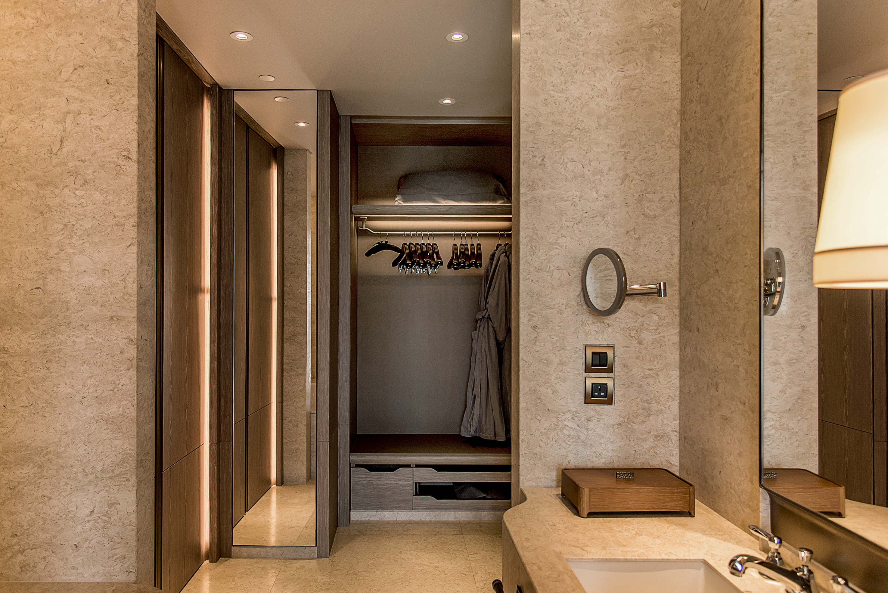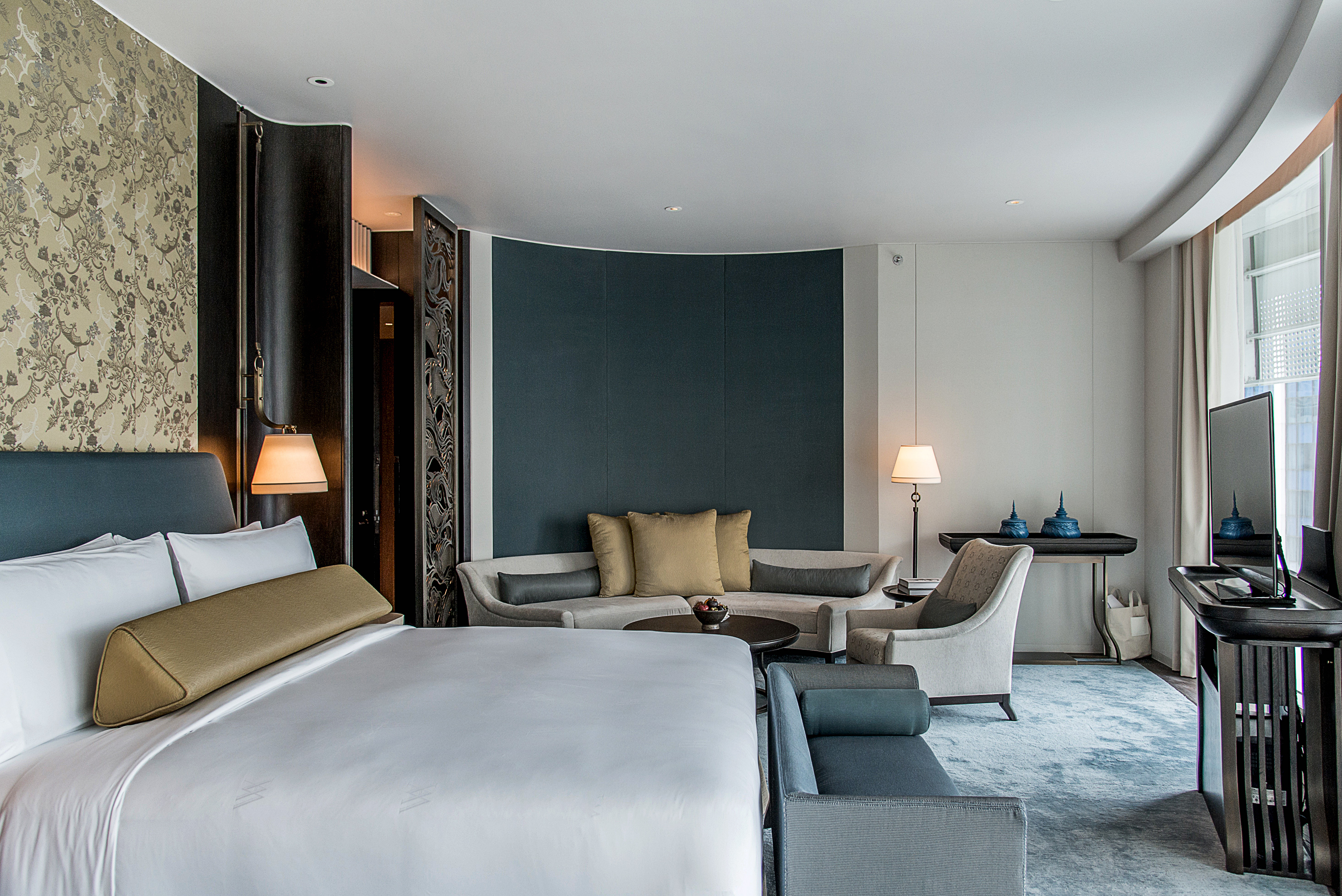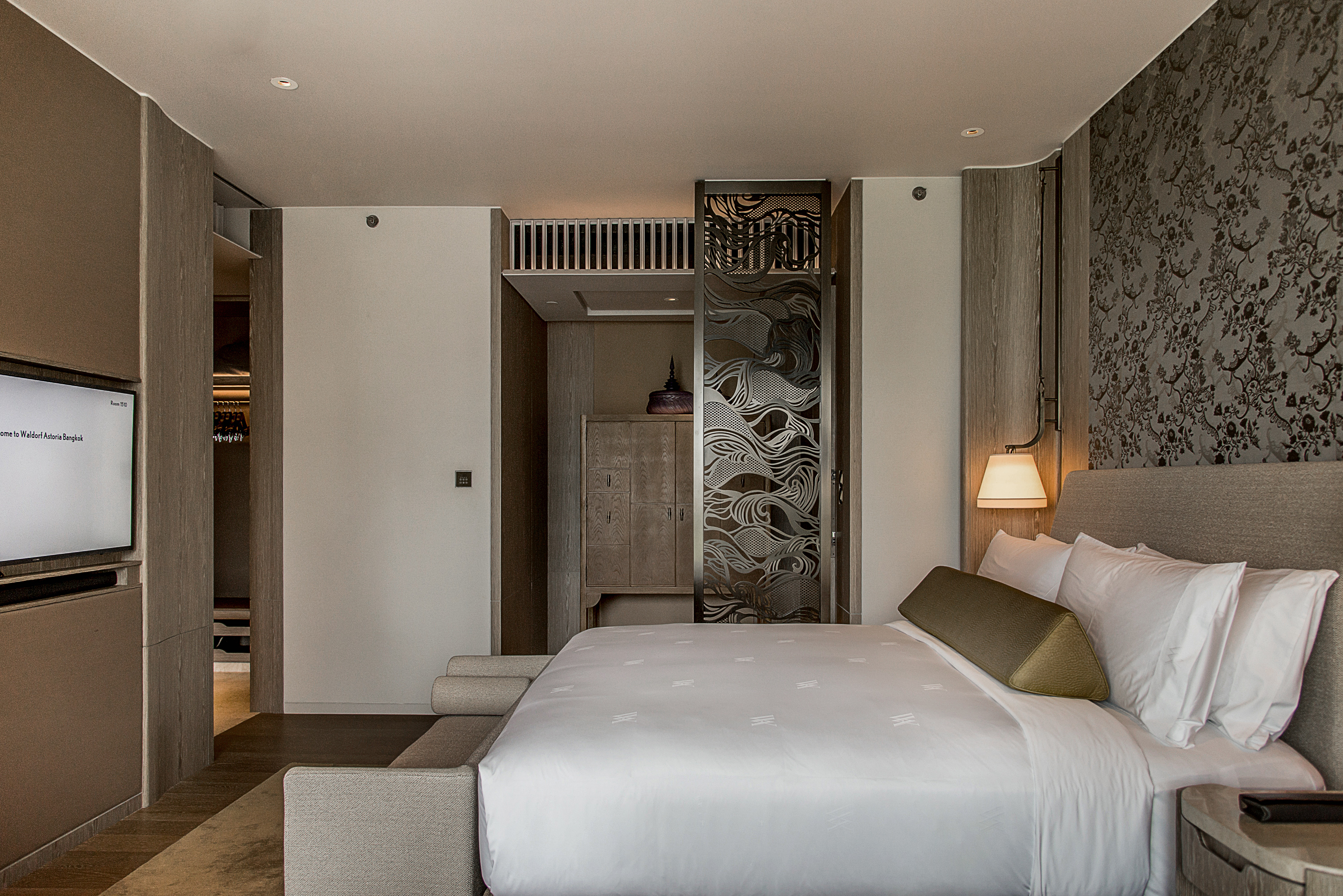 สำหรับ Waldorf Astoria Bangkok แห่งนี้ให้บริการห้องพักและสวีทสไตล์เรสสิเดนเชียล จำนวนทั้งหมด 171 ห้อง ที่สะท้อนให้เห็นถึงความมีศิลปะที่ประณีต พิถีพิถันด้วยการออกแบบของสถาปนิกชื่อดังชาวฮ่องกงอย่าง Andre Fu และทีมงานของเขาจาก AFSO Desiagn Studio โดยออกแบบให้มีความร่วมสมัยและสอดแทรกเสน่ห์ศิลปะแบบไทย เป็นการตีความที่เหมาะสมกับกรุงเทพฯ ยุคใหม่อย่างแท้จริง โดย Andre Fu รับหน้าที่ในการออกแบบตกแต่งห้องพัก, ห้องอาหาร Front Room, ห้องอาหาร The Brasserie, Pezcock Alley Lounge, ห้องประชุมสัมมนา รวมถึงห้อง Magnolia Ball Room ที่ใช้สำหรับจัดงานเลี้ยงรับรองต่าง ๆ ทั้งนี้ บริเวณชั้นที่ 55-57 ของโรงแรม ยังประกอบด้วยห้องอาหารและบาร์จำนวน 3 ห้อง ที่สามารถเห็นทิวทัศน์ของกรุงเทพฯ ในมุมกว้างที่ได้รับการออกแบบอย่างสวยงาม โดยบริษัทออกแบบคอนเซ็ปต์และดีไซน์ที่มีชื่อเสียงระดับโลกอย่าง AvroKO ซึ่งรับหน้าที่ออกแบบภายในห้องอาหาร Bull & Bear, The Loft และ The Champagne Bar ที่สอดรับกับความเป็น Waldorf Astoria ได้อย่างสมบูรณ์แบบ วันเปิดตัวได้รับเกียรติจากทีมงานผู้อยู่เบื้องหลังของโครงการนี้ ซึ่งบินลัดฟ้ามาร่วมแถลงข่าว พูดคุยถ่ายทอดประสบการณ์การทำงาน พร้อมนำชมพื้นที่ส่วนต่าง ๆ ของทางโรงแรมอย่างใกล้ชิด ไม่ว่าจะเป็น คุณวิสิษฐ์ มาลัยศิริรัตน์ ประธานเจ้าหน้าที่บริหารบริษัท Magnolia Quality Development Corporation Limited (MQDC), Mr.Alan Watts ประธานกลุ่มโรงแรมและรีสอร์ทในเครือ Hilton, Mr.Martin Rinck รองประธานบริหาร และหัวหน้าใหญ่กลุ่มโรงแรมและรีสอร์ท Luxury & Lifestyle ของเครือ Hilton, Mr.Andre Fu สถาปนิกชาวฮ่องกง ผู้ออกแบบ Waldorf Astoria Bangkok และผู้ก่อตั้ง AFSO บริษัทออกแบบโรงแรมชั้นนำ และ Mr.William Harris สถาปนิกจากบริษัท AvroKO ผู้ออกแบบห้องอาหารและบาร์ บนชั้น 55-57 Waldorf Astoria Bangkok ในส่วนของห้องพัก ทุกห้องกว้างขวางและตกแต่งอย่างหรูหราและ The Champagne Bar ที่ตั้งอยู่บนชั้น 57 ชั้นสูงสุดของโรงแรม ให้บริการแชมเปญ ค็อกเทลสุดครีเอทีฟ พร้อมวิวที่สวยที่สุดของกรุงเทพฯ ในบรรยากาศที่เป็นส่วนตัว