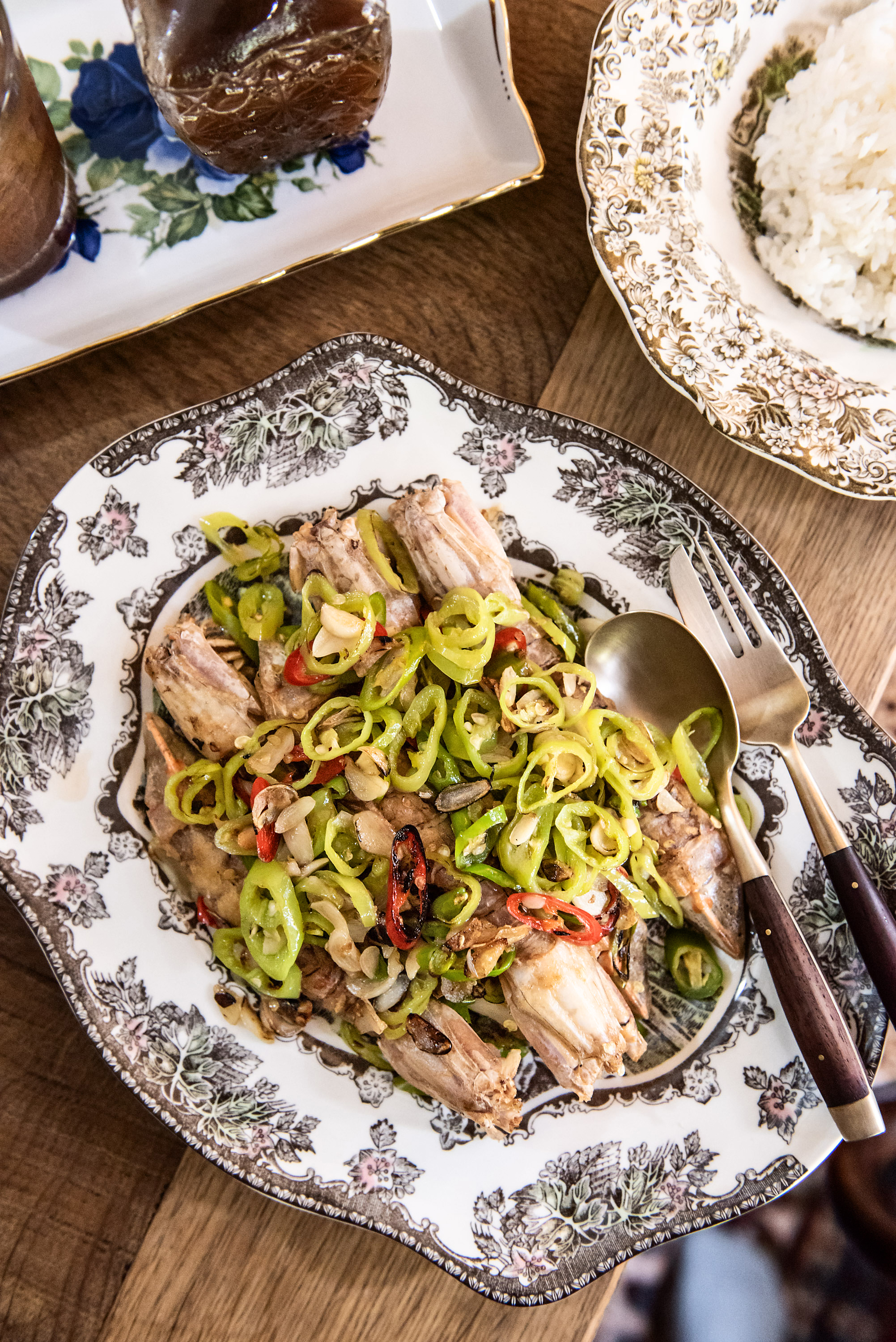 หรือจะเป็นเมนูอาหารทะเล กั้งผัดพริกสด กั้งตัวโตคัดไซส์ ที่ทางร้านนำไปทอดกรอบก่อน แล้วจึงนำมาผัดเข้ากับพริกหยวกและกระเทียม เป็นอีกหนึ่งเมนูแปลกใหม่ที่ให้รสชาติจัดจ้านแบบไทย ๆ ราดน้ำซีอิ๊วปรุงรสสูตรเฉพาะของชานพระนคร โรยหน้าด้วยกระเทียมเจียวกรอบ ๆ ให้รสเค็มนำแต่กลมกล่อม พร้อมกลิ่นหอมซีอิ๊วอย่างเป็นเอกลักษณ์เฉพาะ