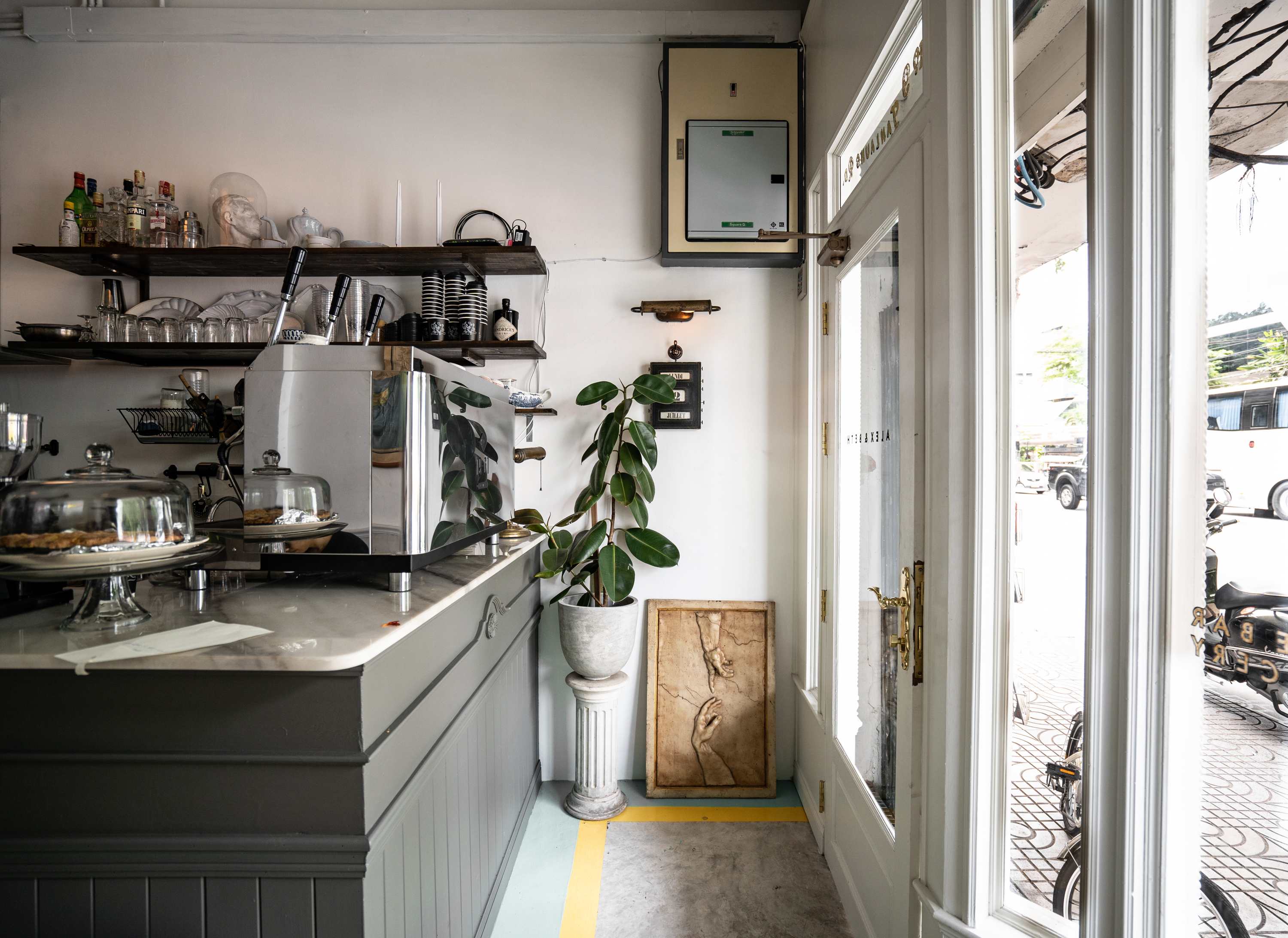 เพียงเดินเข้ามาก็ได้กลิ่นอายของความคลาสสิกจากการตกแต่งภายในร้าน บรรยากาศด้านในทางร้านเลือกใช้เฟอร์นิเจอร์ไม้ มู้ดแอนด์โทนสีคลาสสิกและการตกแต่งในแบบวินเทจ จัดวางโซนที่นั่งมุมต่าง ๆ ได้อย่างลงตัว ไม่ว่าจะเลือกนั่งตรงไหนก็สามารถชิลล์เอาท์ ใช้ช่วงเวลาดี ๆ จิบเครื่องดื่มแก้วโปรด ละเลียดความอร่อยกับเมนูที่อยู่ตรงหน้าและมองดูวิถีชีวิตของย่านกรุงเก่าได้ตลอดทั้งวัน