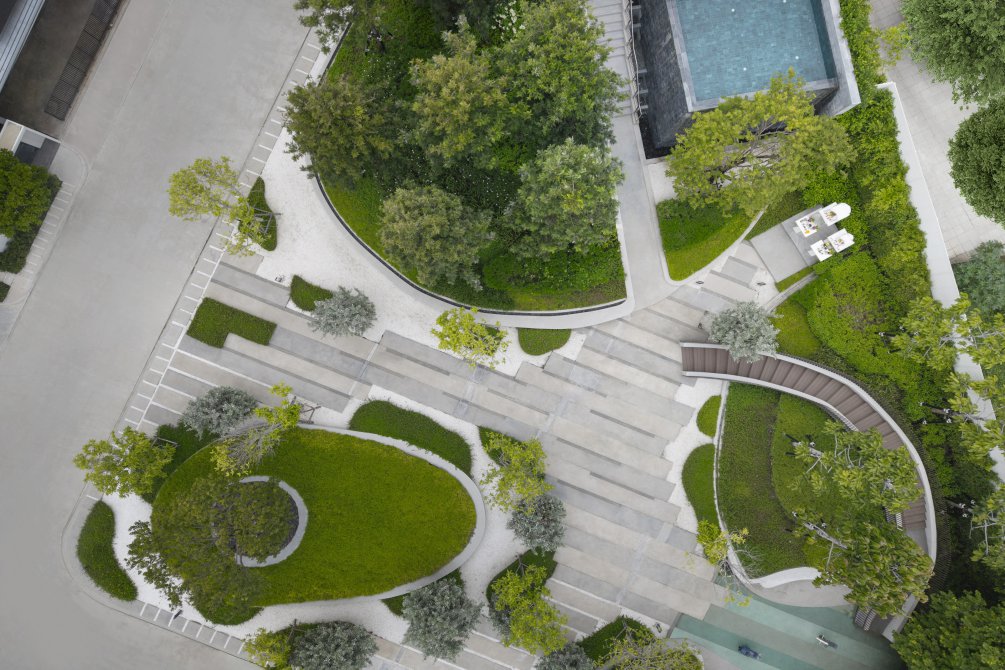 • Inner courtyard : พื้นที่สวนบริเวณชั้น 1 กลางบ้าน เป็นพื้นที่สีเขียวหลัก ๆ ของบ้านและเป็นพื้นที่รับแสง ให้พื้นที่ภายในบ้านมีมิติและความเชื่อมโยงระหว่างสเปซภายนอก-ภายในบ้านให้มีความร่มรื่น ใกล้ชิดธรรมชาติ