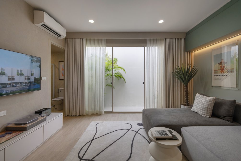 ต่อมาคือโครงการ nue VERSE Krungthep Kreetha พื้นที่สำหรับคนที่ต้องการมากกว่าที่อยู่อาศัย เป็นทาวน์โฮมสไตล์ Urban Hybrid Home ที่มอบความอิสระและความเป็นส่วนตัวในทุกพื้นที่ เพื่ออิสรภาพของการใช้ชีวิตตามต้องการ สะท้อนตัวตนที่แตกต่าง บนทำเลกรุงเทพกรีฑาตัดใหม่ เชื่อมต่อทุกจุดหมายได้อย่างง่ายดาย ให้ใช้ชีวิตทุกด้านได้อย่างสมดุล ครบครันด้วยสิ่งอำนวยความสะดวกที่ให้คุณพักผ่อนได้อย่างเต็มที่ อยู่คูล...ในแบบที่เป็นเอง ด้วยดีไซน์ที่เปิดกว้าง ฟังก์ชันที่ยืดหยุ่น และบรรยากาศที่เป็นอิสระในทุกวัน เหมาะกับคนที่ต้องการบาลานซ์ชีวิตเมืองกับจังหวะของตัวเอง และคนที่ไม่ต้องการบ้านหรู…แต่ต้องการบ้านที่ “เข้าใจ”