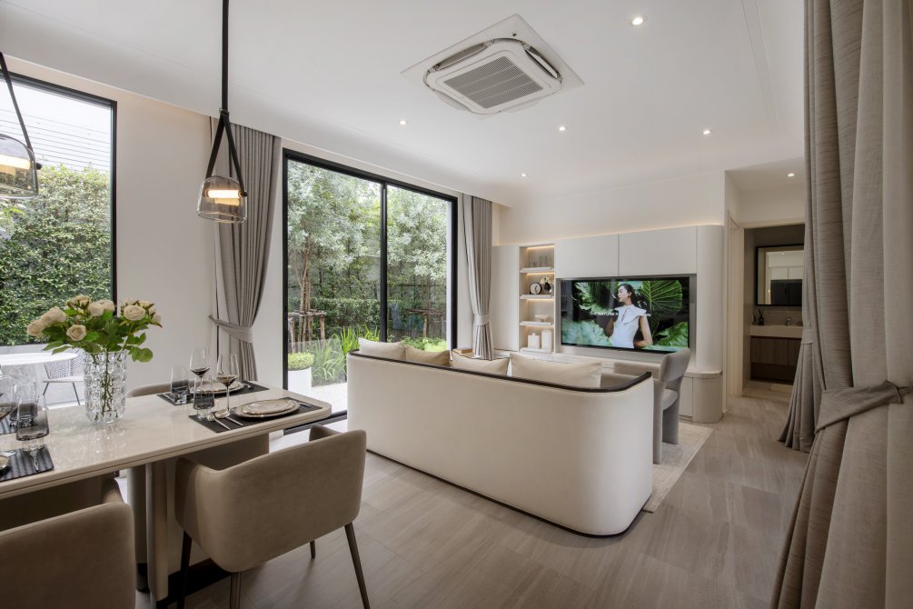 อีกทั้งยังเชื่อมต่อพื้นที่เข้ากับสวนสีเขียวหลังบ้านที่สร้างความร่มรื่นสบายตา เพื่อให้ทุกช่วงเวลาของการอยู่อาศัยเต็มไปด้วยความสบายกาย สบายใจ พร้อมให้คุณดื่มด่ำความสุขจากธรรมชาติได้ตลอดวัน ตามแนวคิด ‘Grounding’ หรือการสร้างสิ่งแวดล้อมให้ผู้อยู่อาศัยสงบและกลับมาสู่จุดสมดุล เหมือนได้กลับมาชาร์จพลังชีวิตทุกครั้งที่กลับบ้าน ด้วยธรรมชาติที่ซ่อนไว้ในทุกดีเทลการออกแบบ