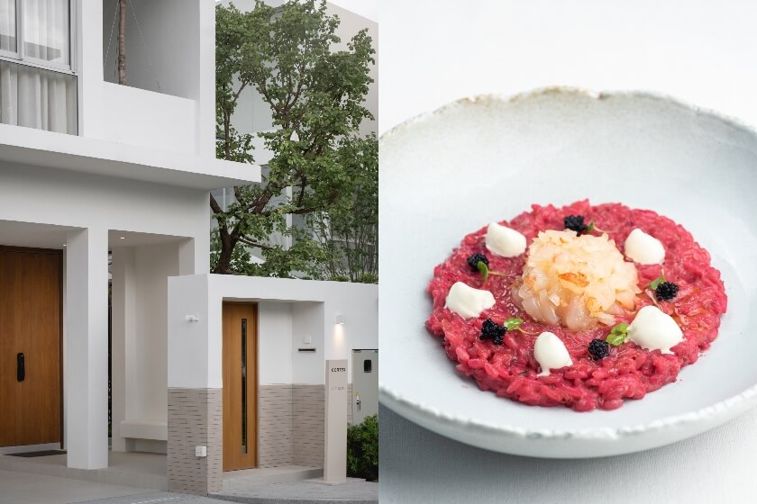 • Main : ส่วนเมนูจานหลักนำเสนอบีทรูท Root Vegetables หรือผักที่เติบโตใต้ผืนดิน ขึ้นชื่อเรื่องความทานยาก นำมาดัดแปลงเป็นจานอาหารที่เข้าใจง่ายและทานได้ทุกคน ในเมนูที่ชื่อว่า Risotta di Terra ริซอตโตจากข้าว Carnaroli จากอิตาลี สีแดงอมม่วงสด จากสีสันธรรมชาติของบีทรูท เสิร์ฟให้ทานคู่กับ Stracciatella Cheese ทาร์ทาร์กุ้งแดงและไข่ปลา